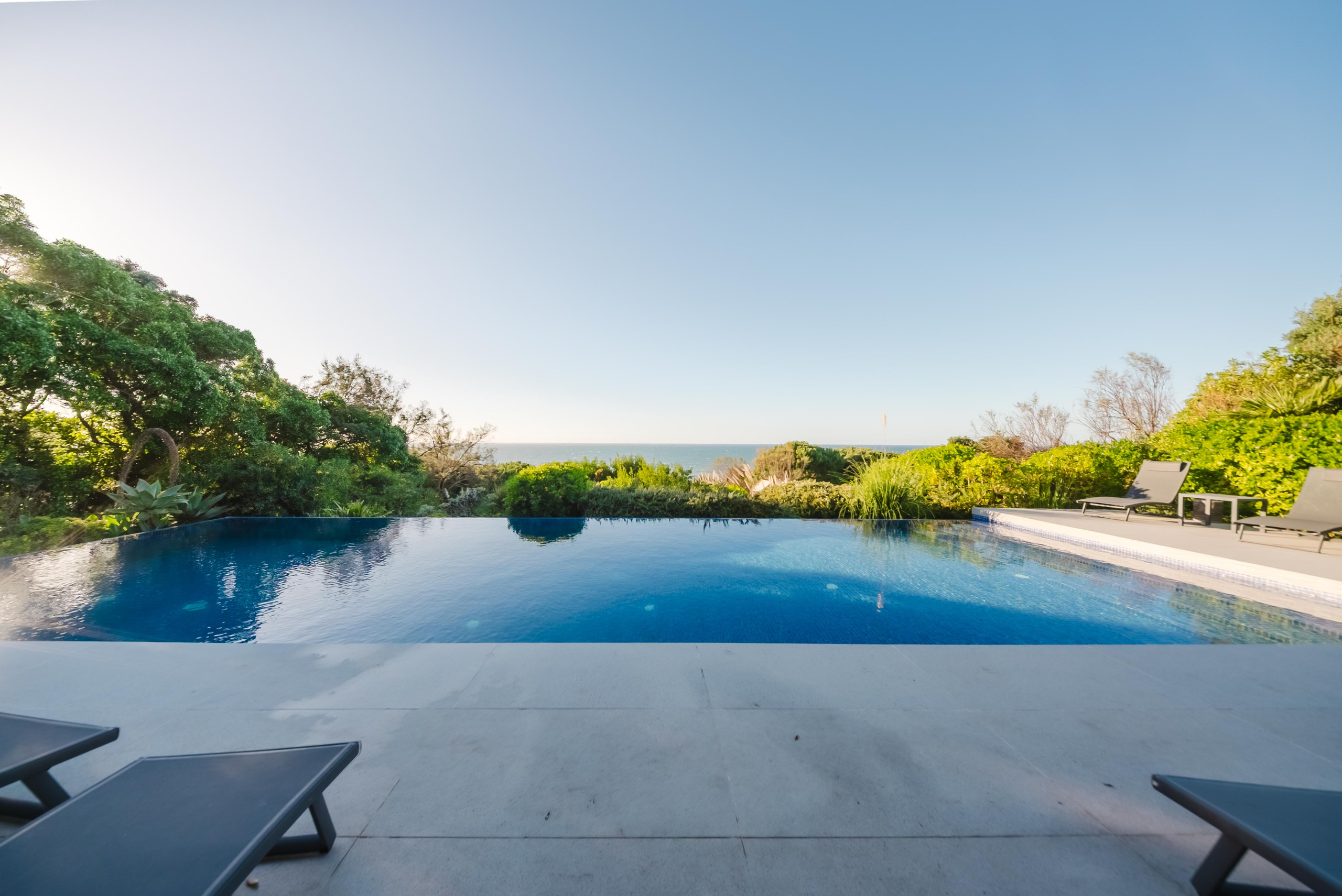 Com duas piscinas e terraços em “decks” desnivelados, goza de uma vista para o mar privilegiada e permite comtemplar o por-do-sol nas águas turquesa do atlântico.