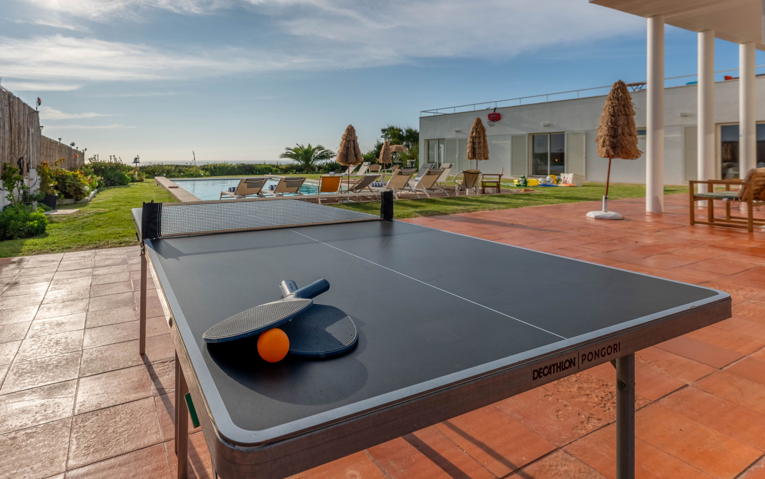 La casa dispone de una zona exterior que es un auténtico oasis de ocio y relax. La piscina invita a darse un refrescante chapuzón, mientras que el inmenso y cuidado jardín ofrece un espacio tranquilo para momentos de serenidad. Para los amantes de la recreación, Villa Atlantic Blue cuenta con mesa de ping pong, equipos de gimnasia y entrenamiento de swing de golf, asegurando diversión y ejercicio para todos los gustos. Además, se ofrecen juegos como ajedrez, damas y dardos, que ofrecen entretenimiento y competencia amistosa para todas las edades.
