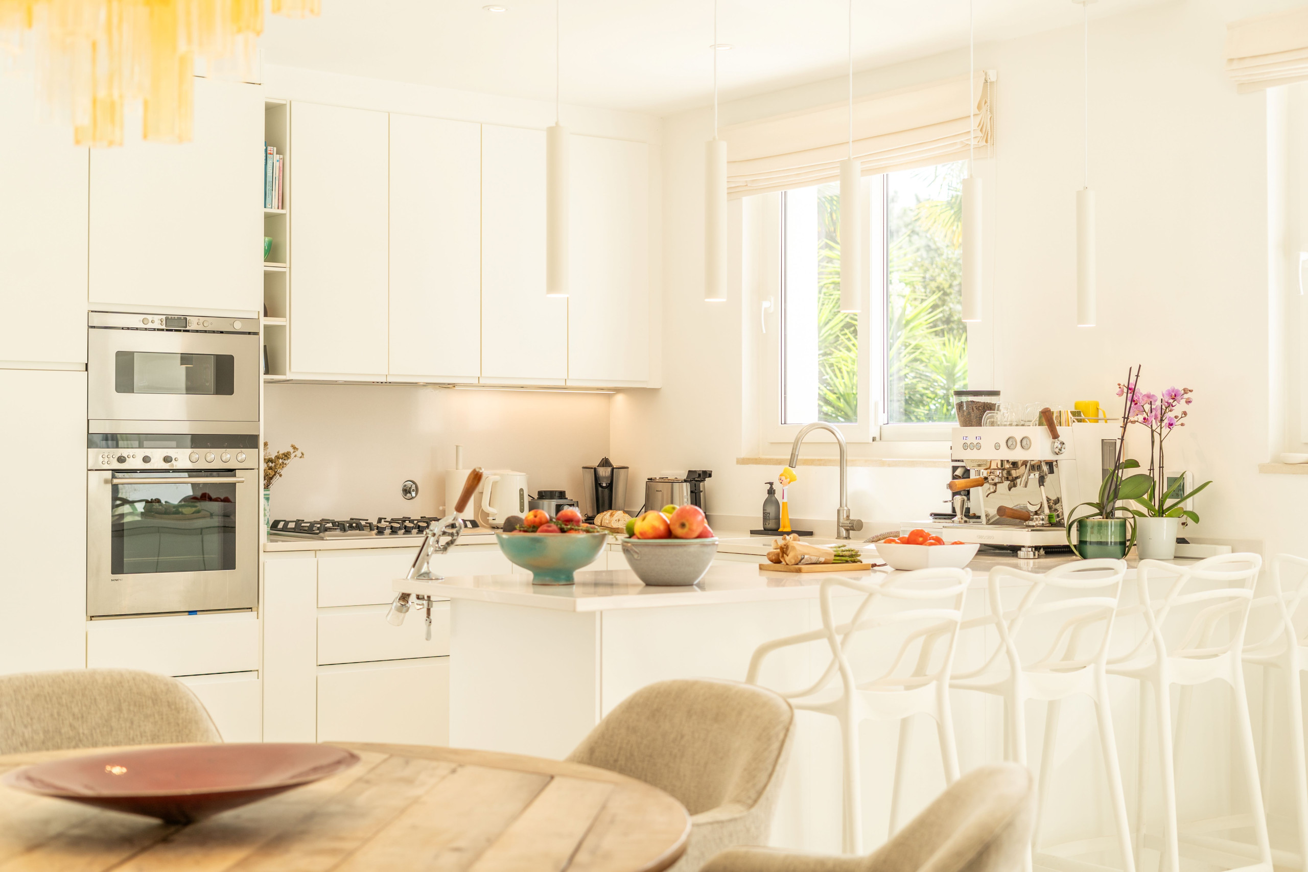 Su diseño en forma de U permite una luz extraordinaria y una fuerte conexión con el exterior, donde hay una cómoda zona de comedor justo al lado de la piscina, que se puede calentar si se solicita.