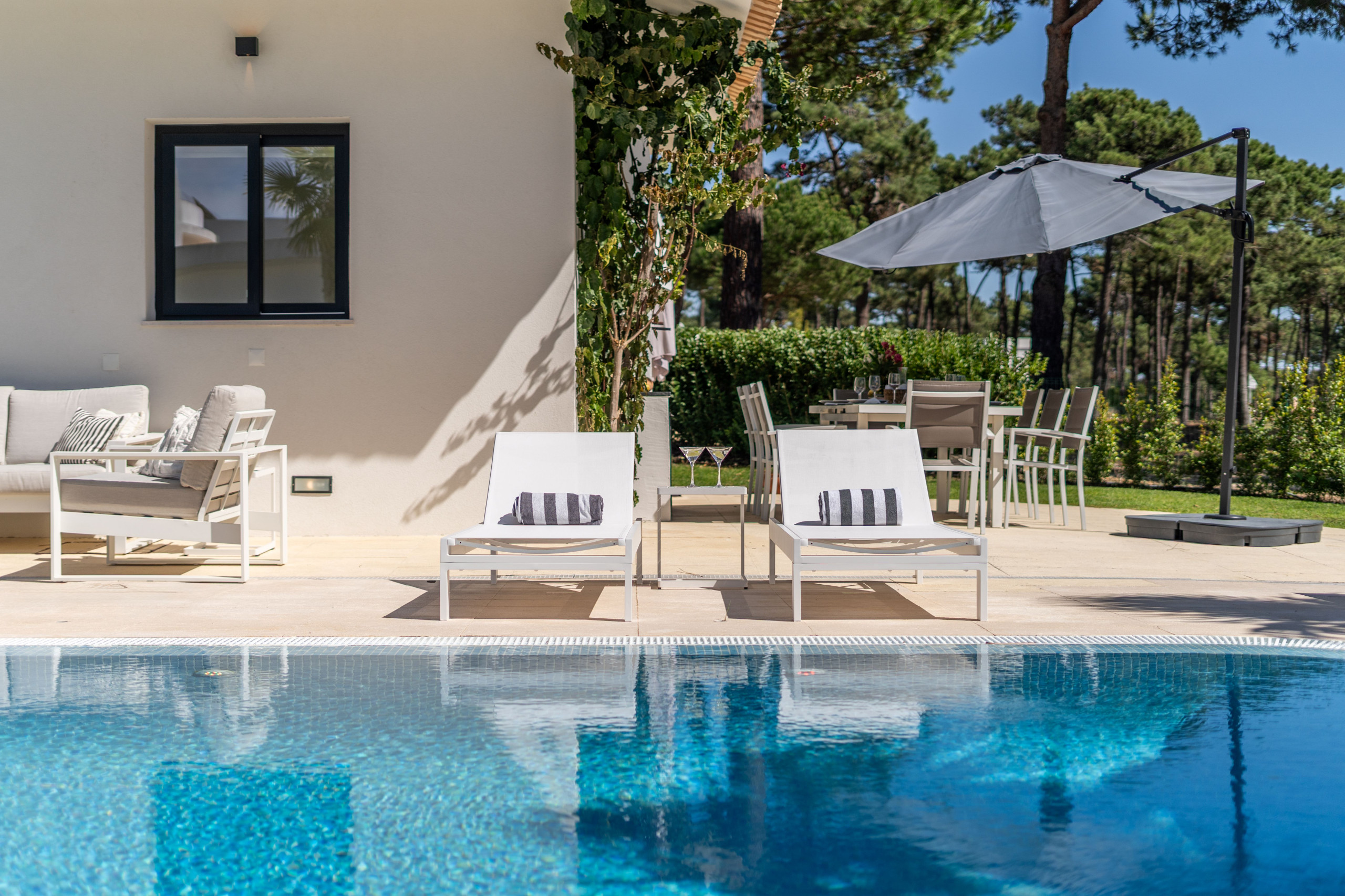 Estratégicamente situada para aprovechar al máximo el sol, Villa Aroeira II es también deliciosamente tranquila, situada frente a la calle del campo de golf Herdade da Aroeira.