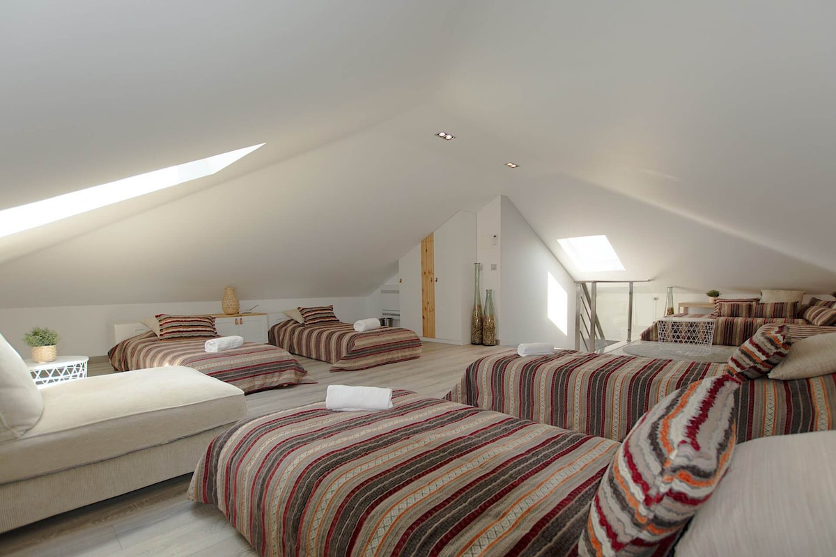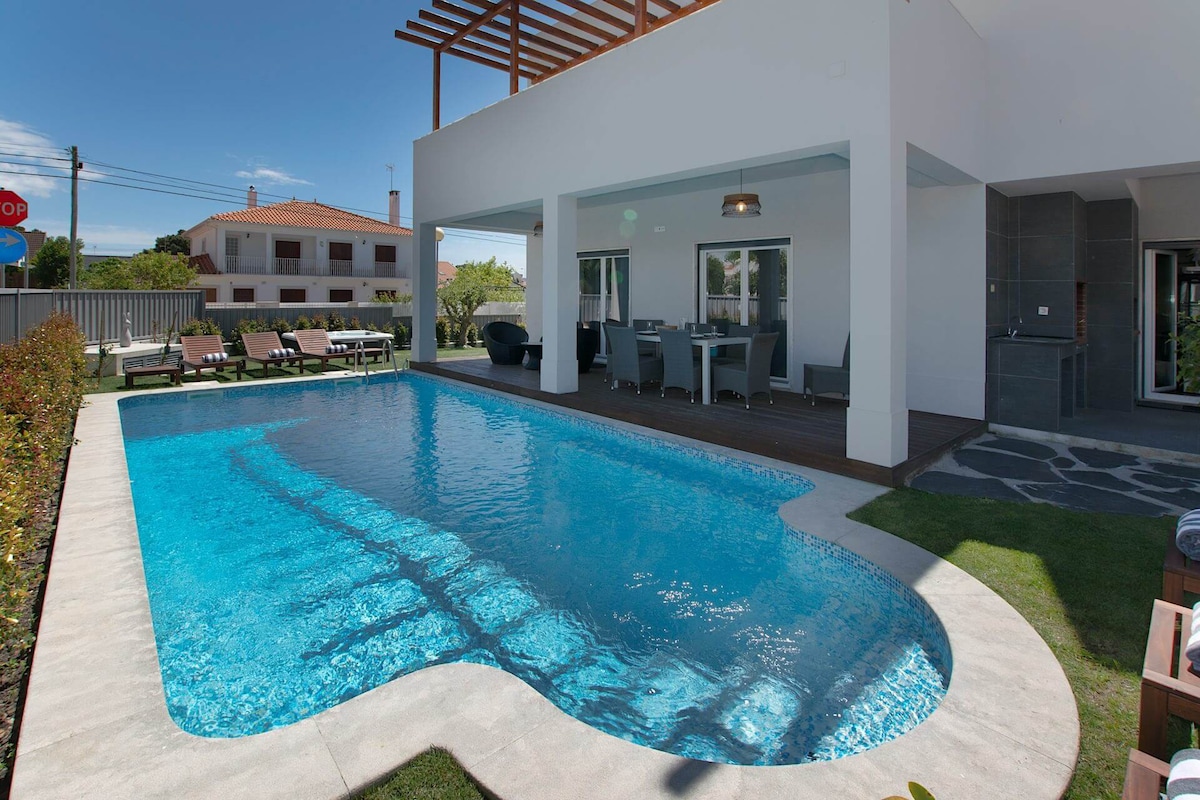 We stayed a full week at the villa with 6 friends and we had a wonderful time. The host was very kind and helpful and the villa had everything we needed, the villa is clean and spacious and has a nice pool (we didn’t use the jacuzzi). We rented two cars which we could park on the property, but taxi’s are also available. If you want to visit Lisbon we suggest one of these options. We recommend this villa to other groups of friends as well as families with kids.