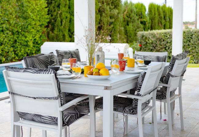 Dispone de jardín, mobiliario jardín, parcela vallada, terraza, lavadora, secadora, barbacoa, plancha, acceso internet (wifi), secador, aire acondicionado, piscina privada, parking aire libre en mismo edificio, mosquiteras en todo el alojamiento, 4 Televisores, tv satelite (Idiomas: Español, Inglés, Francés).