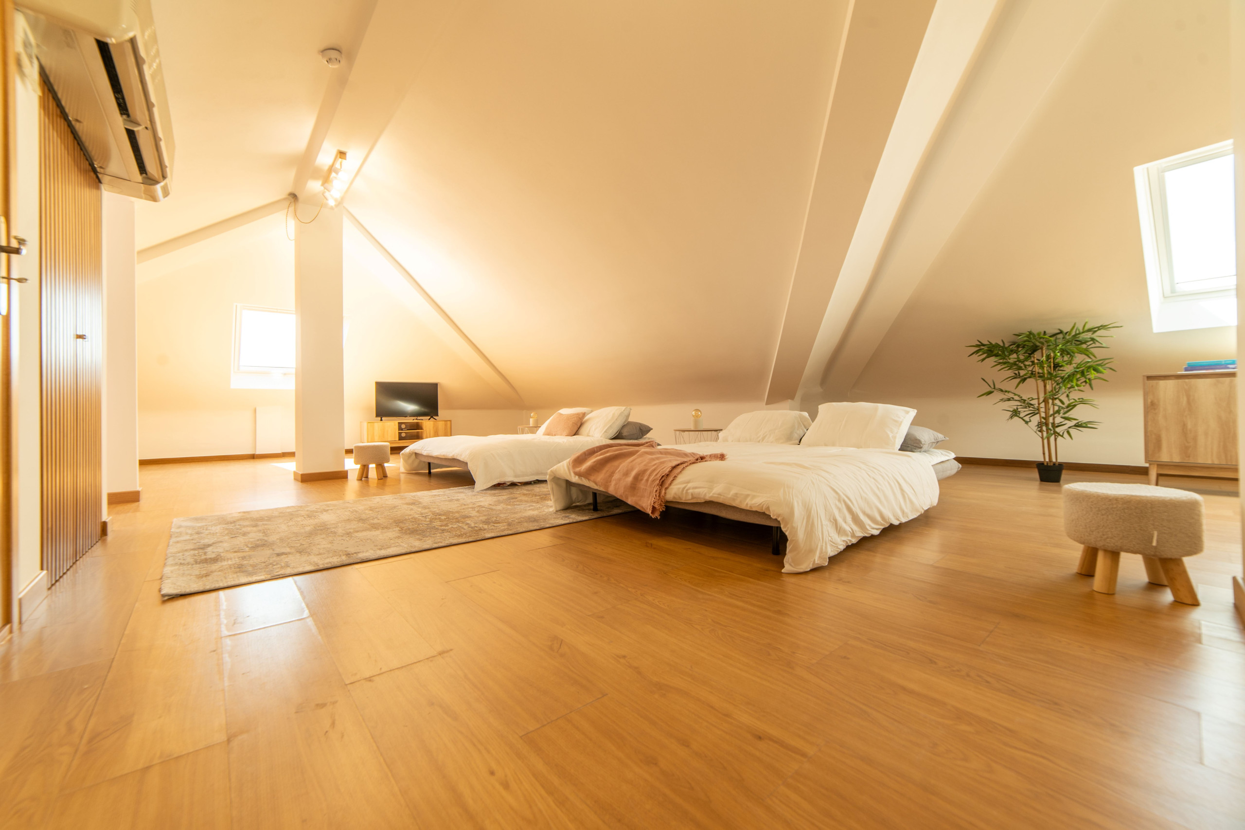 3 chambres avec 2 lits simples 0.90 m x 2.00 mcanapés-lits pouvant être préparés en lits doubles sur demande, AC