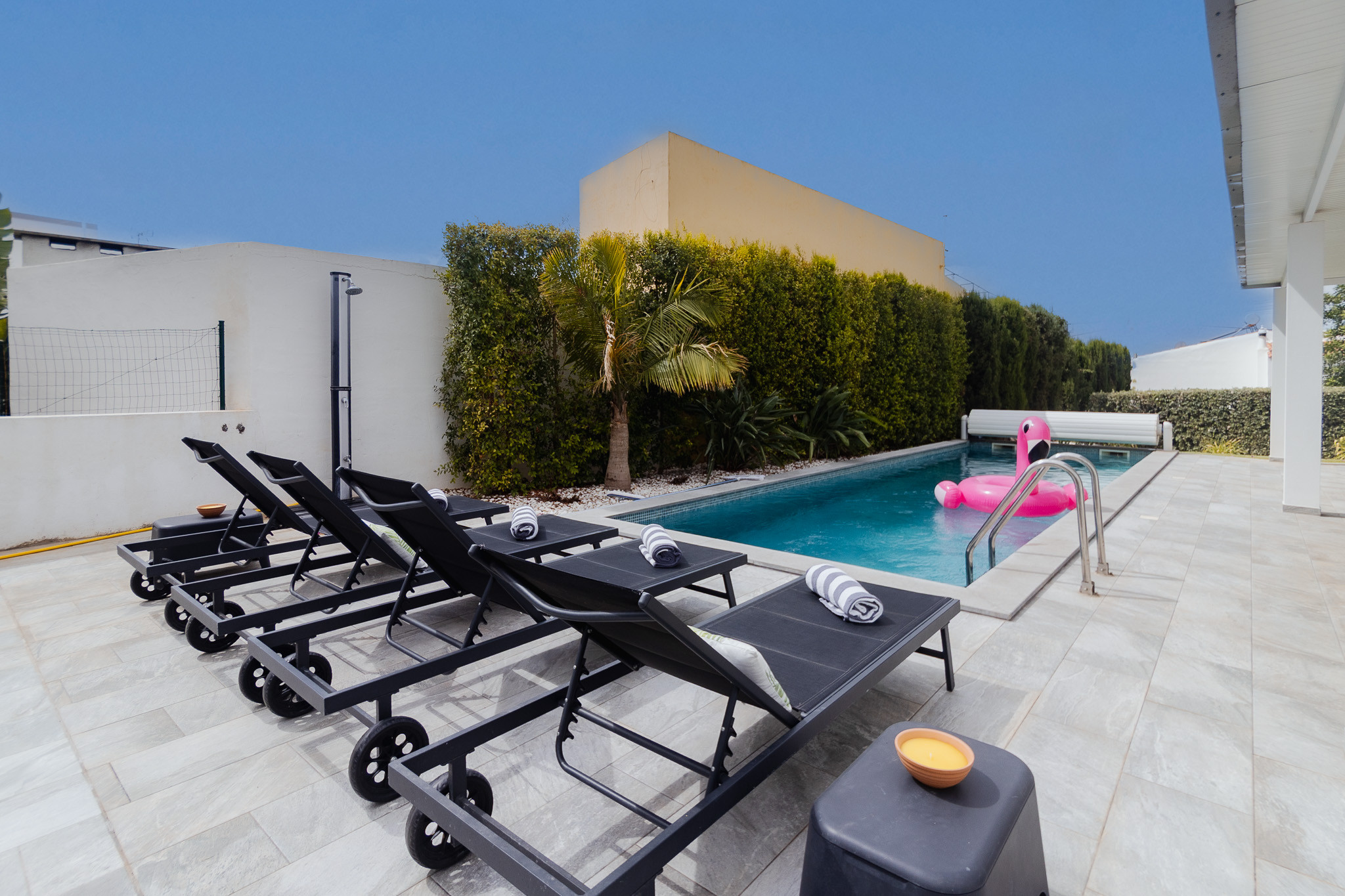 Logement de 200 m², avec vue sur la piscine.