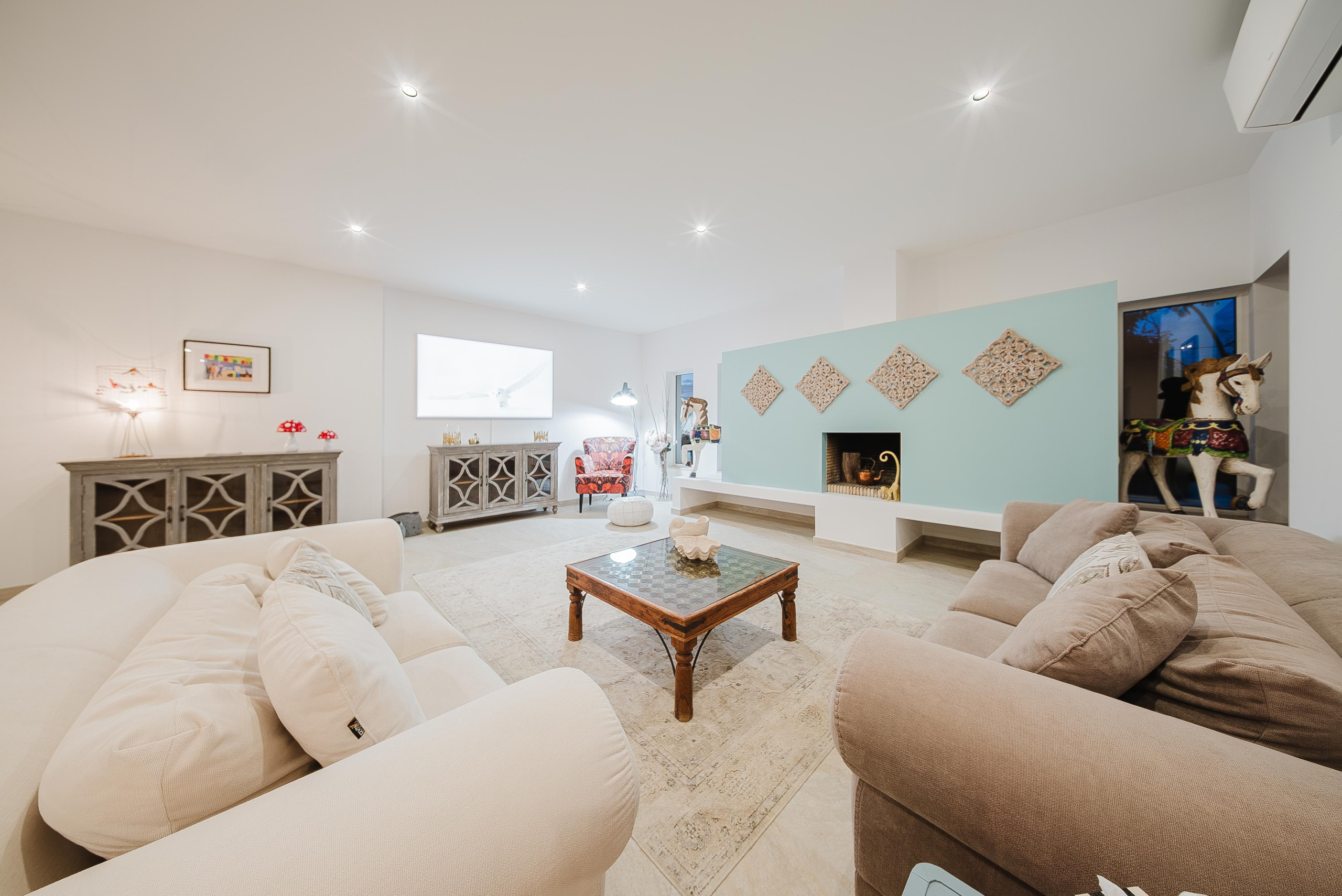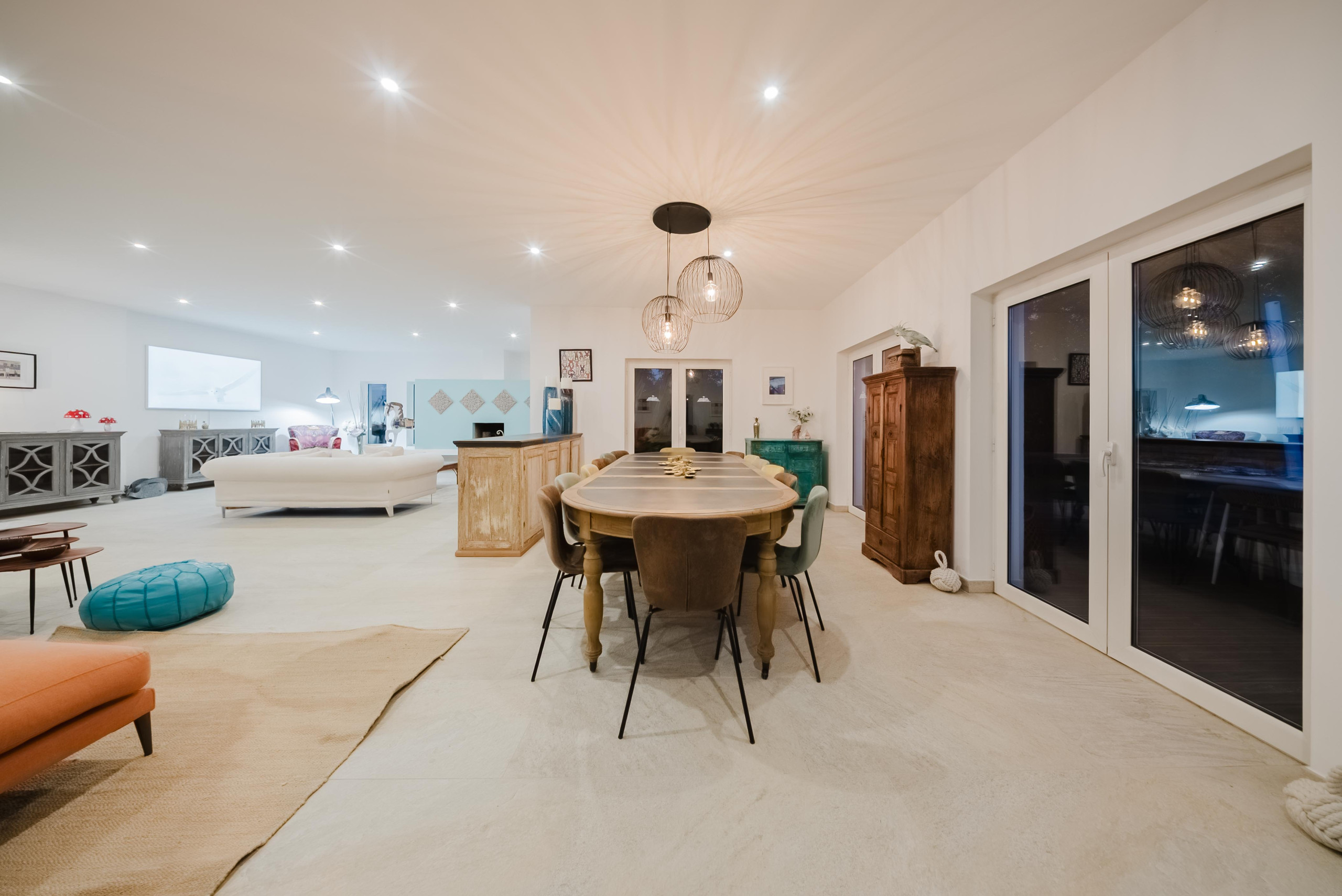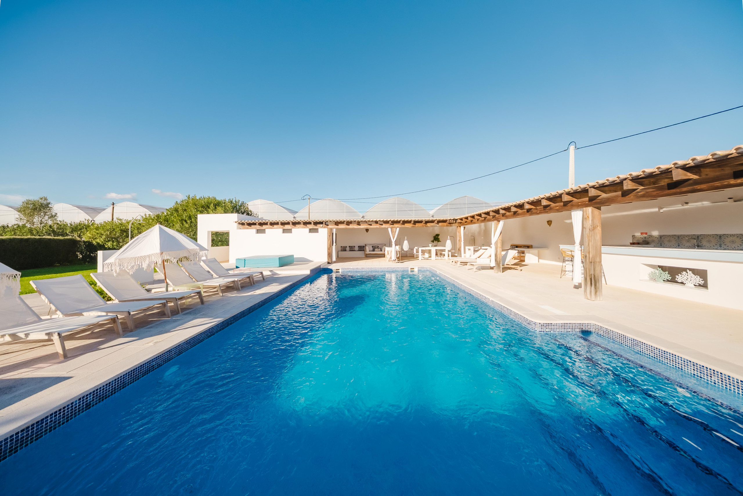 Récemment rénovée et conçue pour une vie fluide entre intérieur et extérieur, la propriété est entièrement climatisée et équipée du chauffage central. Elle dispose de sept chambres doubles avec salle de bains privative, d’une grande cuisine entièrement équipée, ainsi que d’un vaste espace salon/salle à manger ouvert, parfait pour se détendre et partager de bons moments.