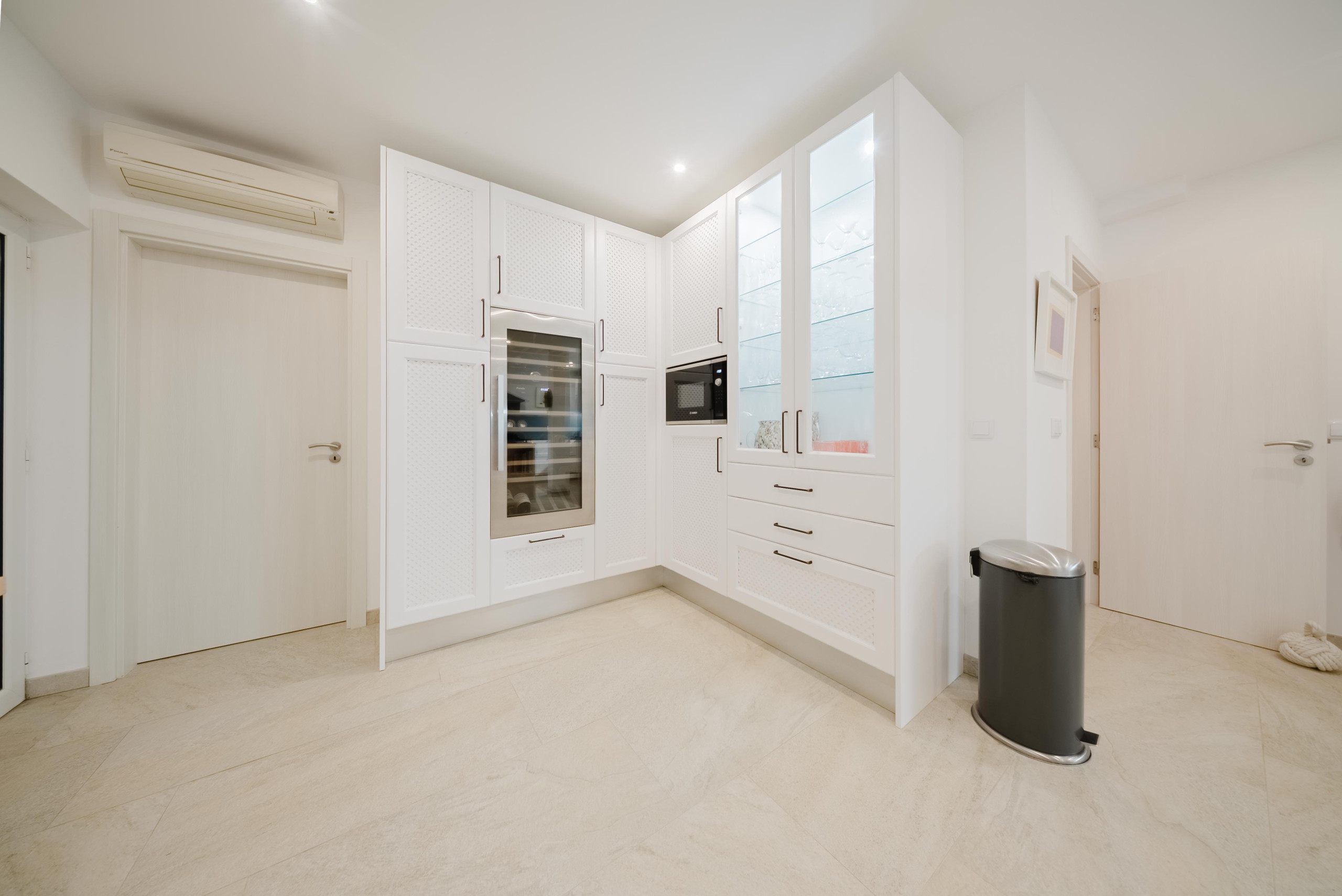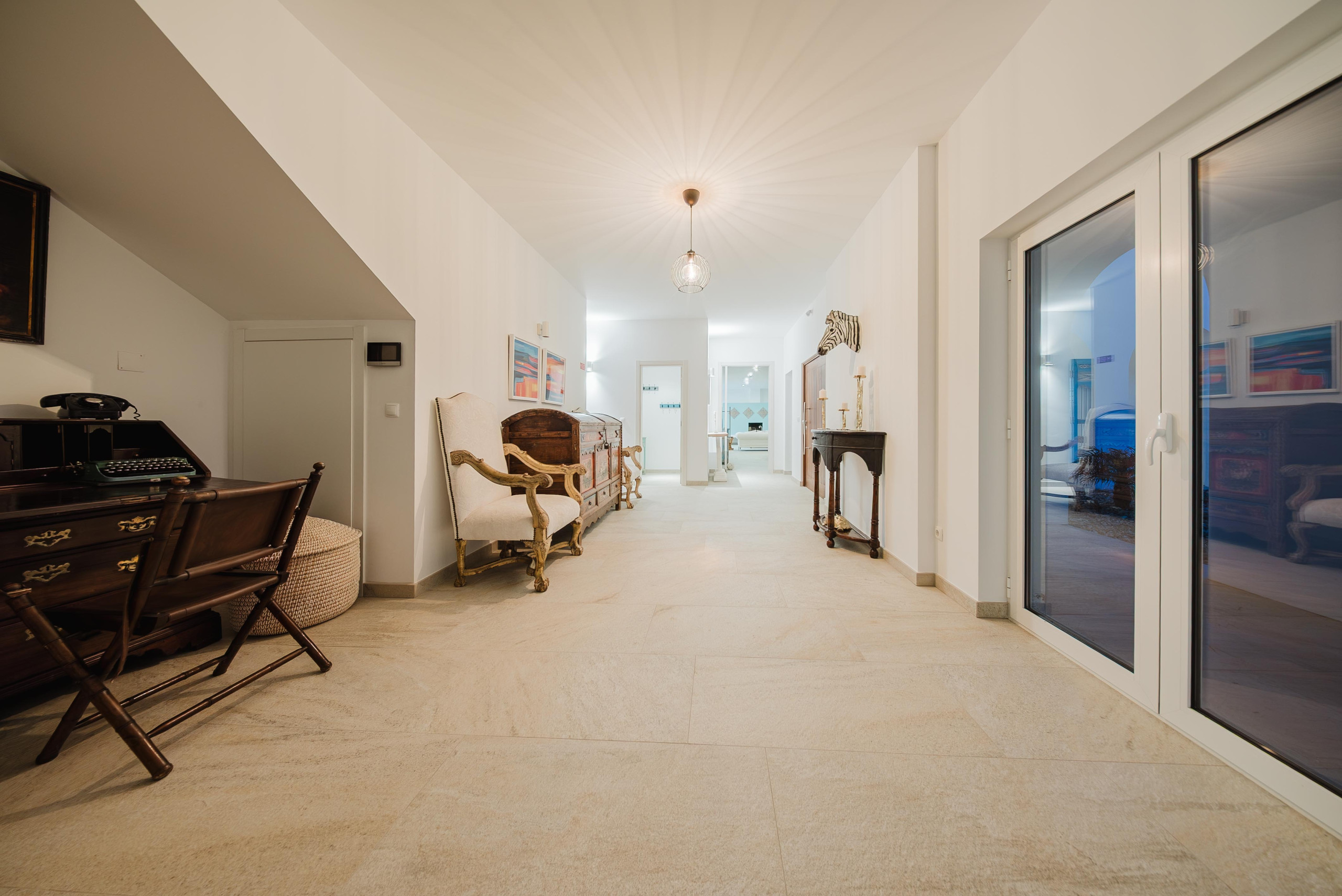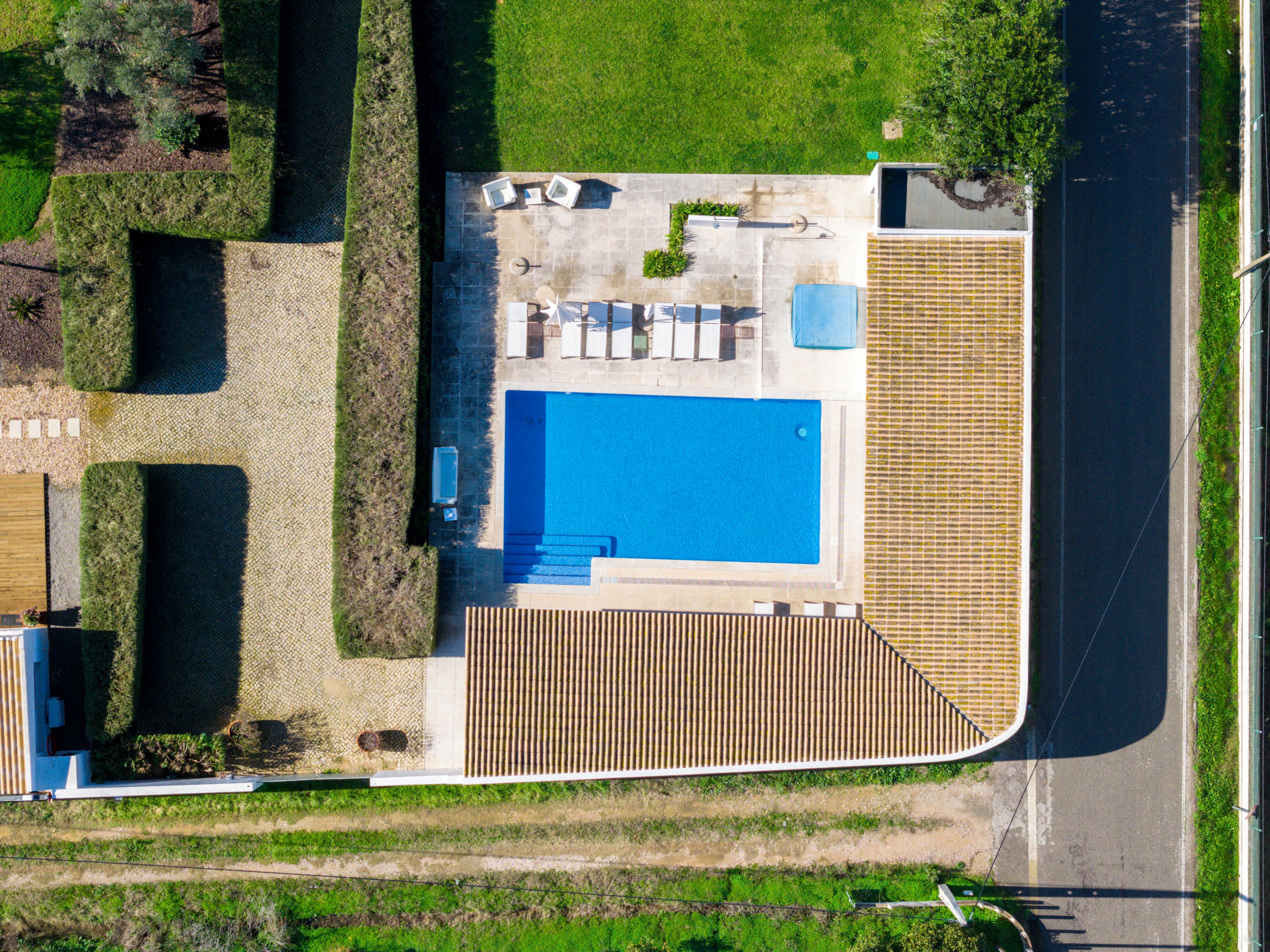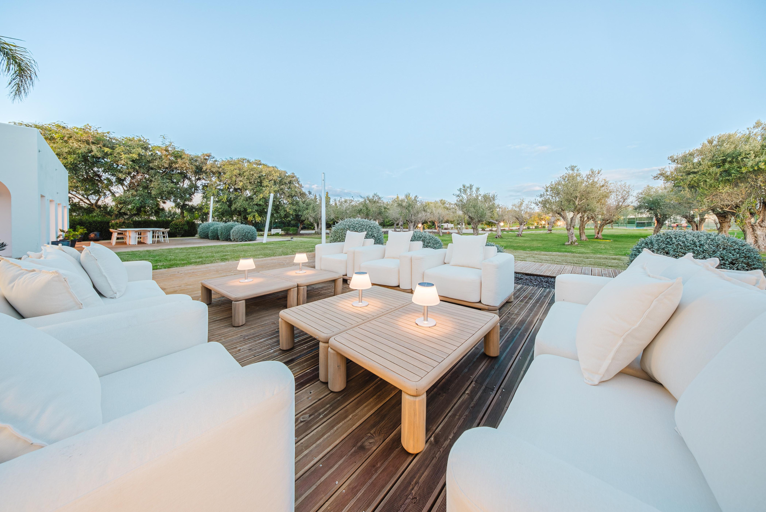 À l’extérieur, les hôtes peuvent profiter d’une grande piscine avec un espace détente, comprenant un pool house, une télévision et une cuisine extérieure avec four à pizza et barbecue. Les équipements supplémentaires incluent une salle de sport climatisée et deux courts de padel panoramiques en verre. Plusieurs terrasses, au rez-de-chaussée, au premier étage et sur le toit, offrent différents espaces ensoleillés ou ombragés pour les repas, la détente et les réceptions.