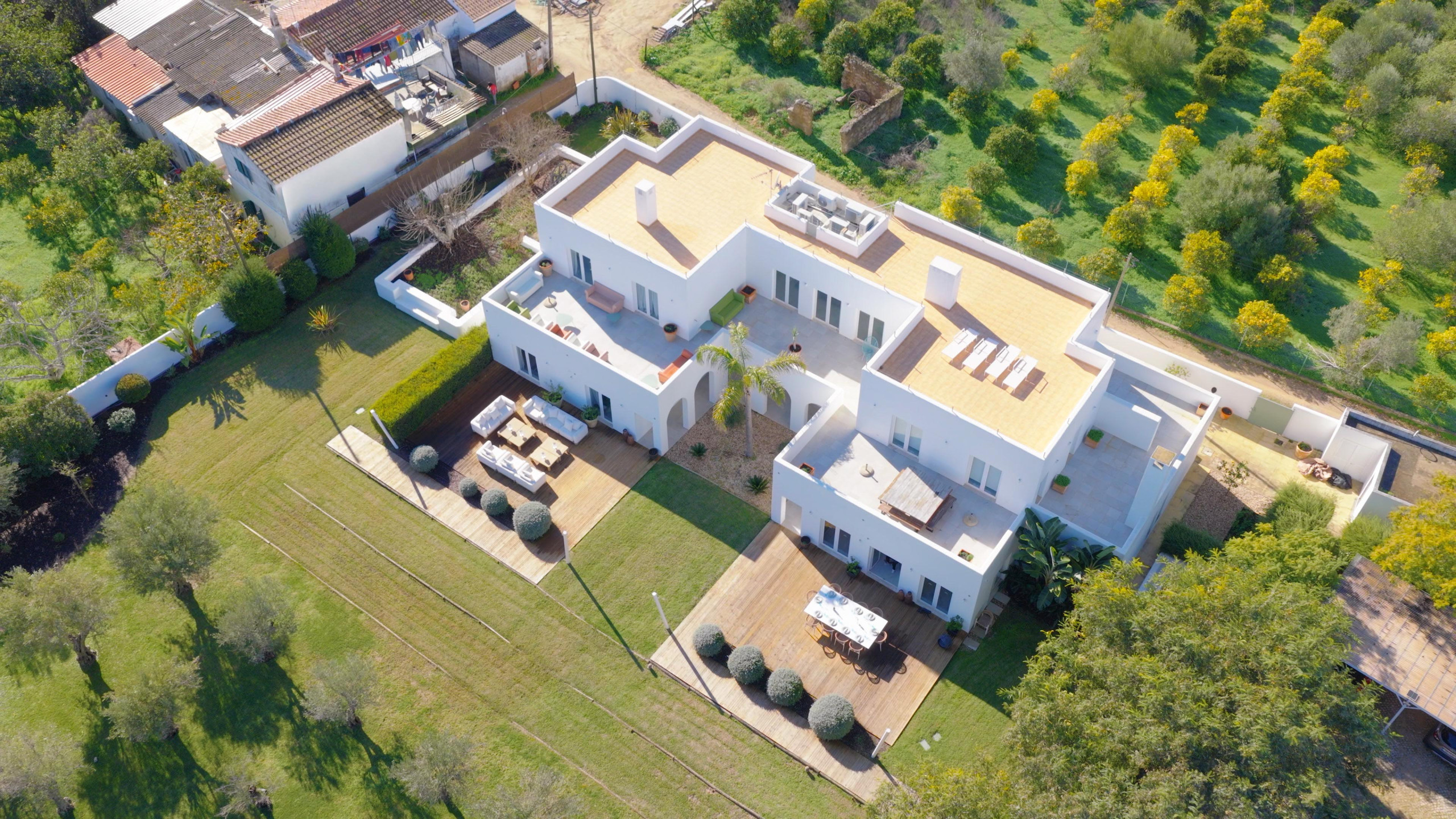 Terrasses au sol, au premier étage et sur le toit