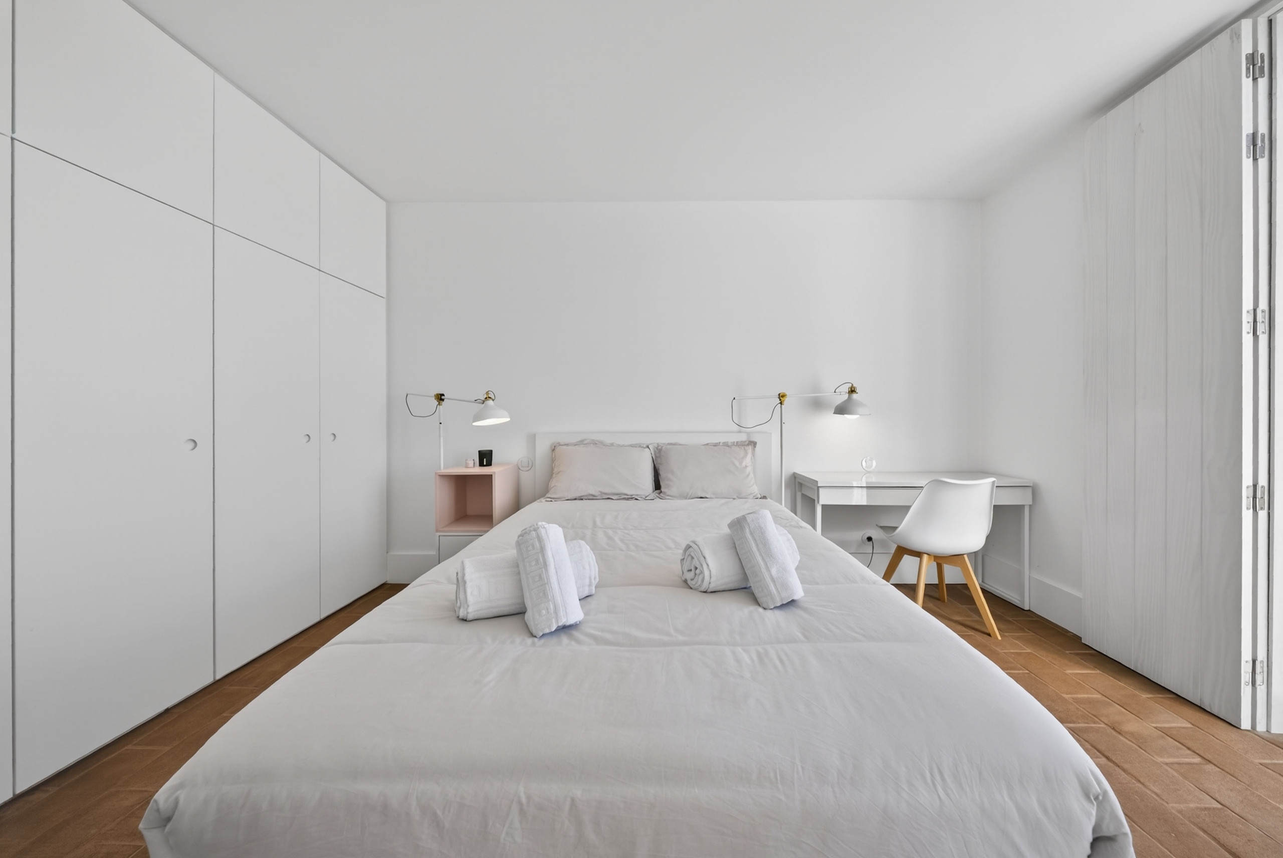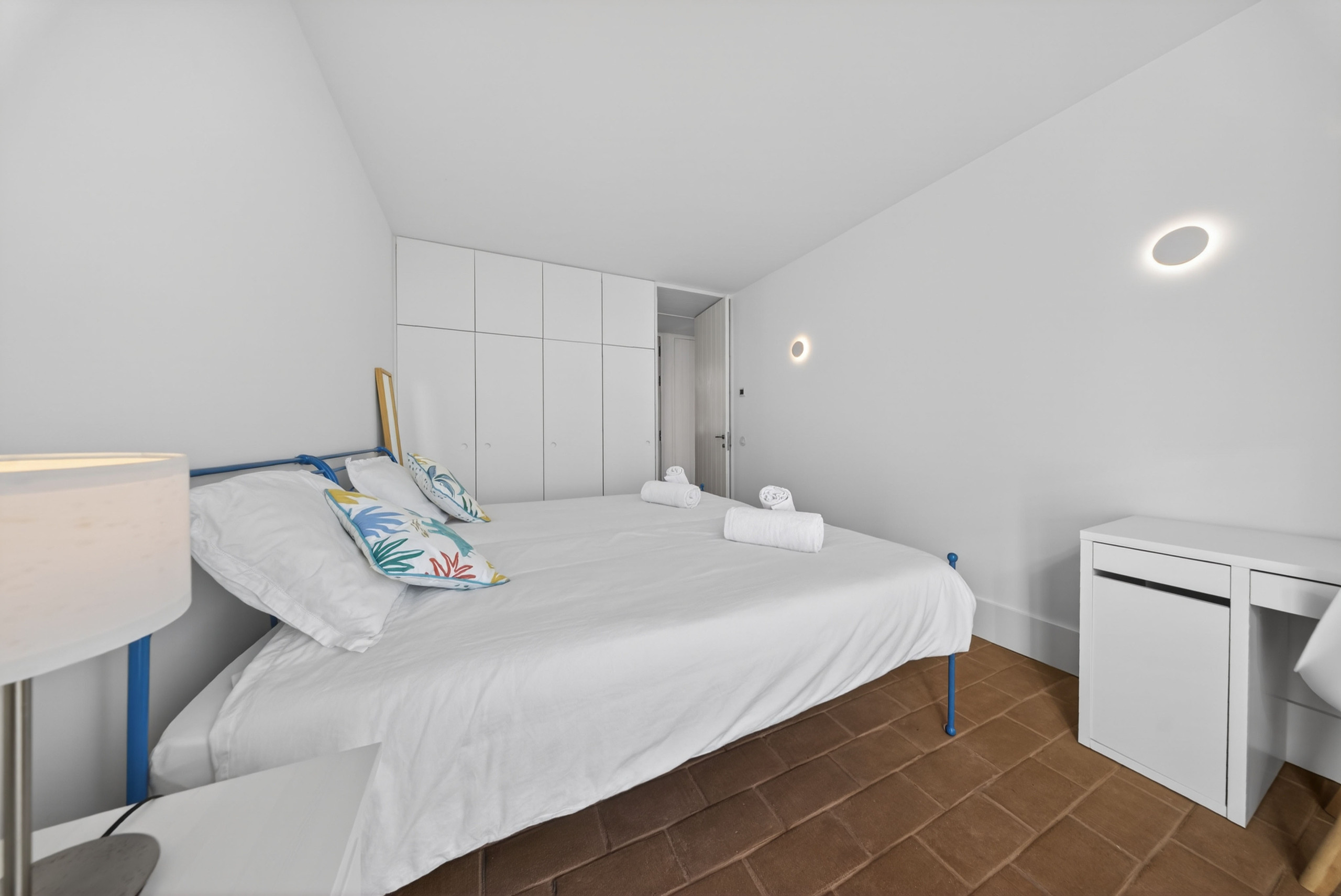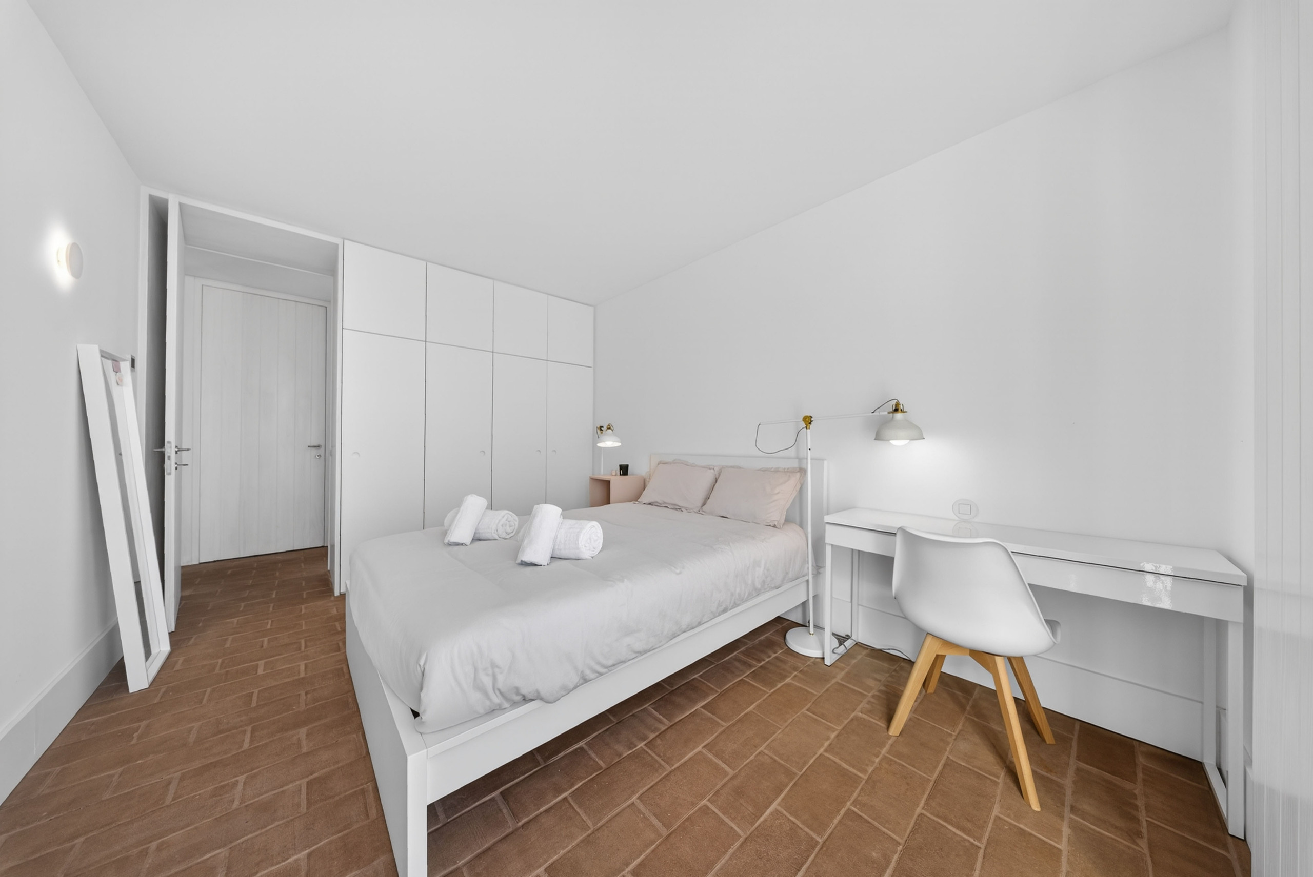 1 suíte com cama de casal 1.60 m x 2.00 m, casa de banho com duche