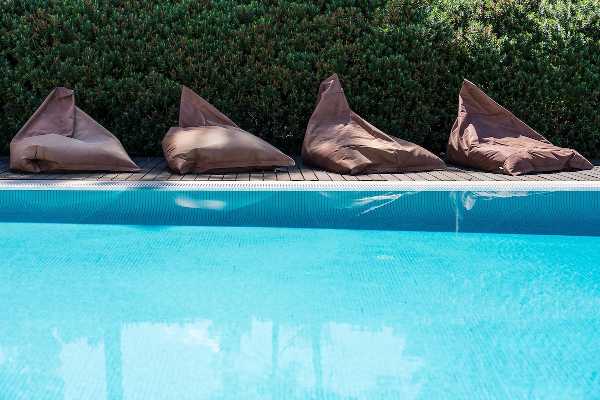 A sua piscina, à beira do alpendre refresca os sentidos nos dias quentes de verão.