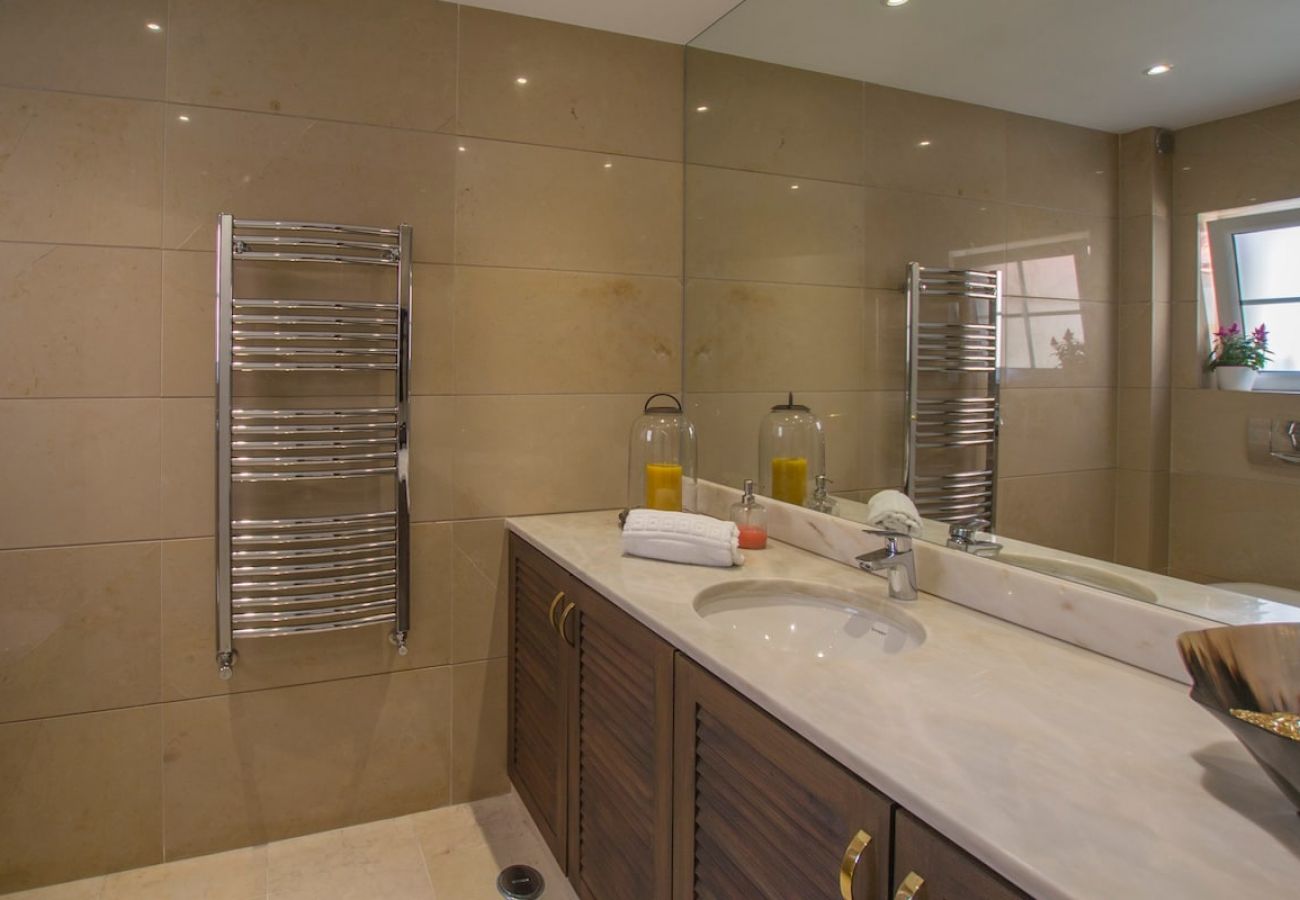 1 suite com cama de casal 1.80 m x 2.00 m, casa de banho com duche e banheira