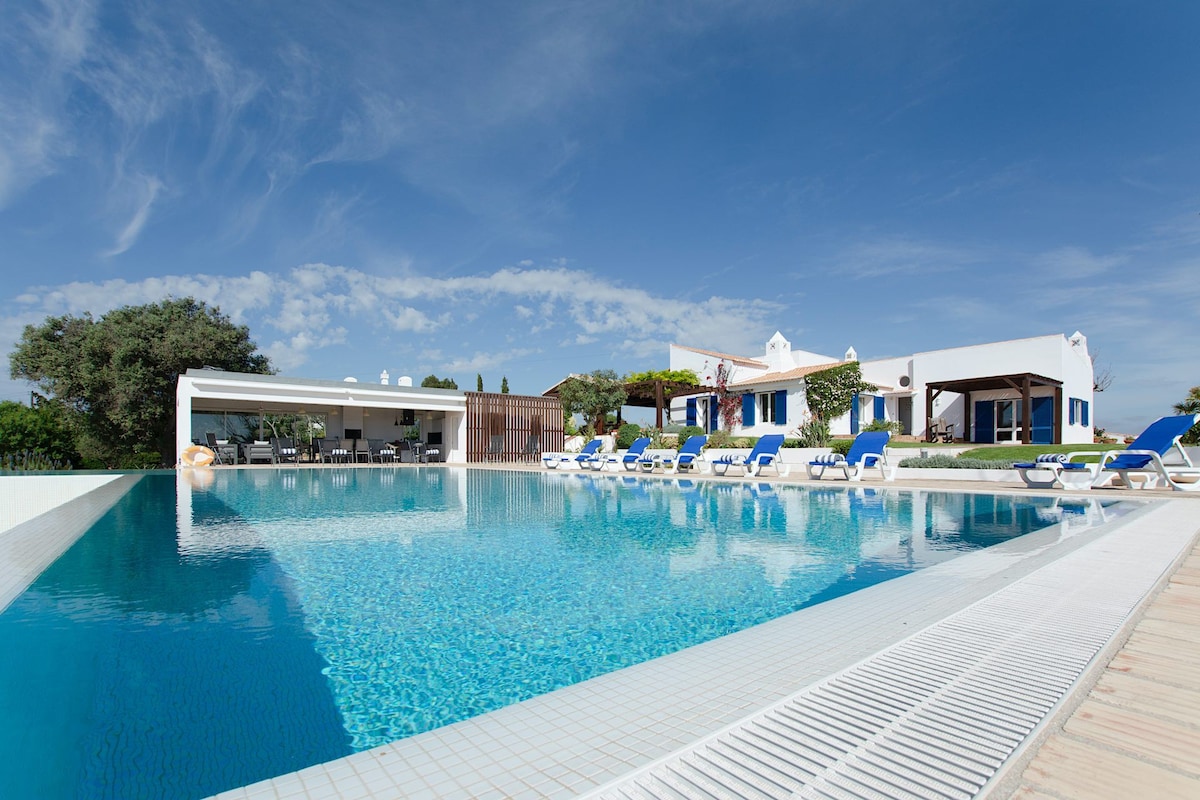 A Villa Alfarrobeira tem uma localização soberba na falésia, com vista para a marina de Lagos e para o mar. Está numa zona sossegada apenas a 5 minutos de carro do centro de Lagos, assim como da sua fantástica marina com muitos restaurantes, bares, lojas e cafés. A casa tem 6 suites e uma fantástica zona exterior com vários alpendres, um dos quais junto à piscina tem zona de estar, mesa de jantar, cozinha e churrasqueira. O exterior da casa também oferece um enorme jardim, uma grande piscina infinita e uma piscina infantil, o que torna esta casa um local excepcional para umas férias maravilhosas em família!