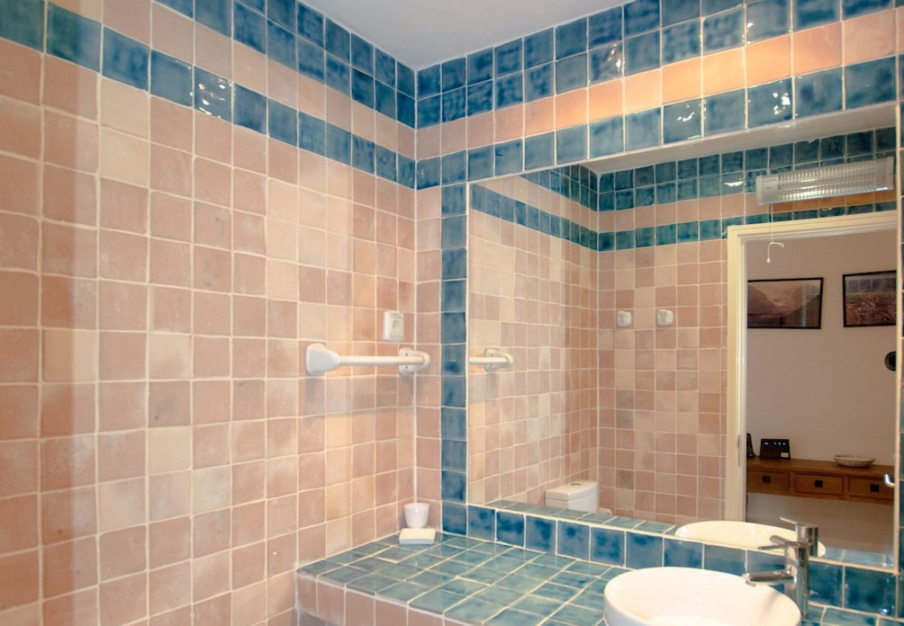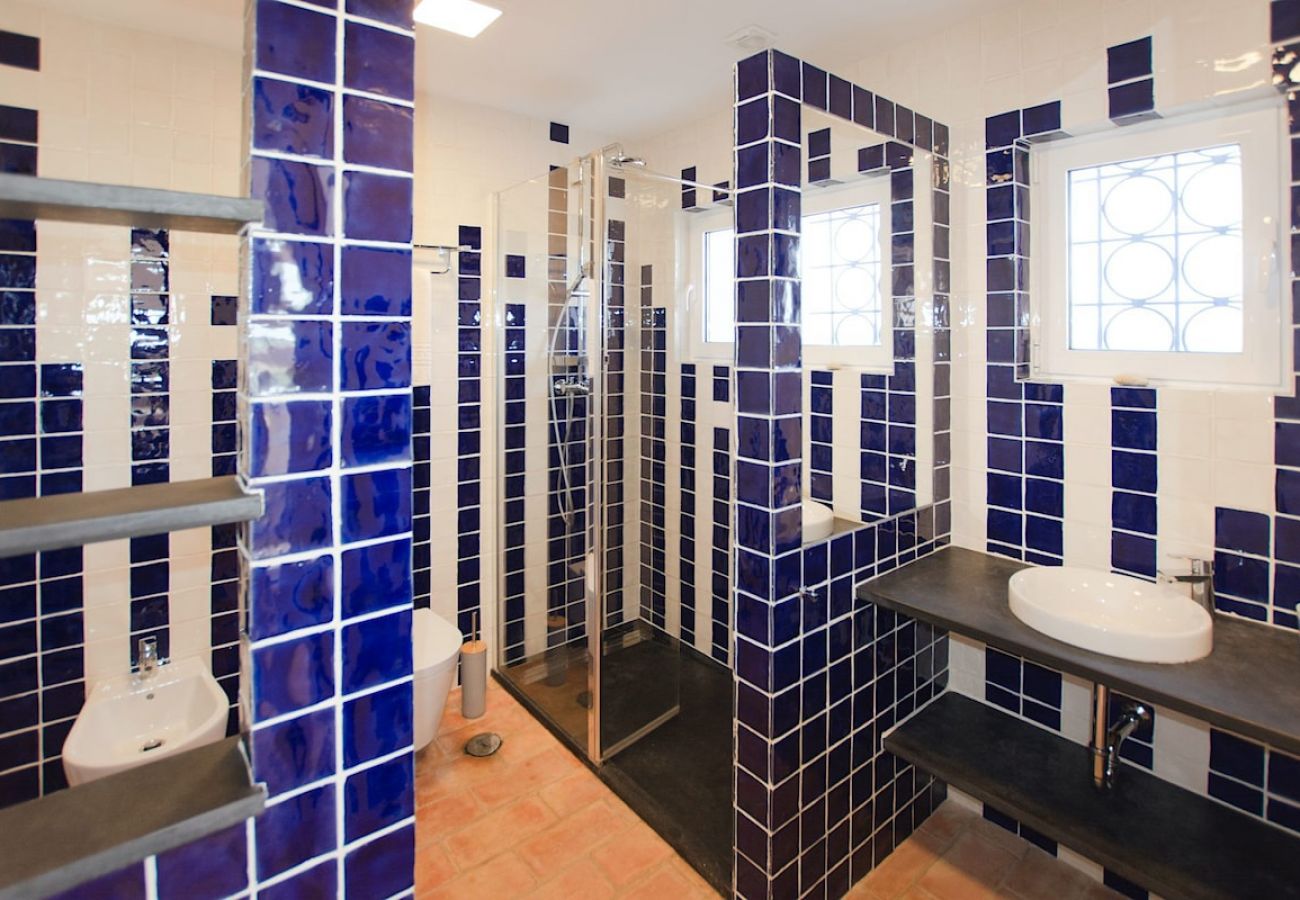 1 suíte com dois sofás-cama para adolescentes, que podem ser adaptados em duas camas de solteiro, casa de banho com duche walk-in; acesso pela área coberta