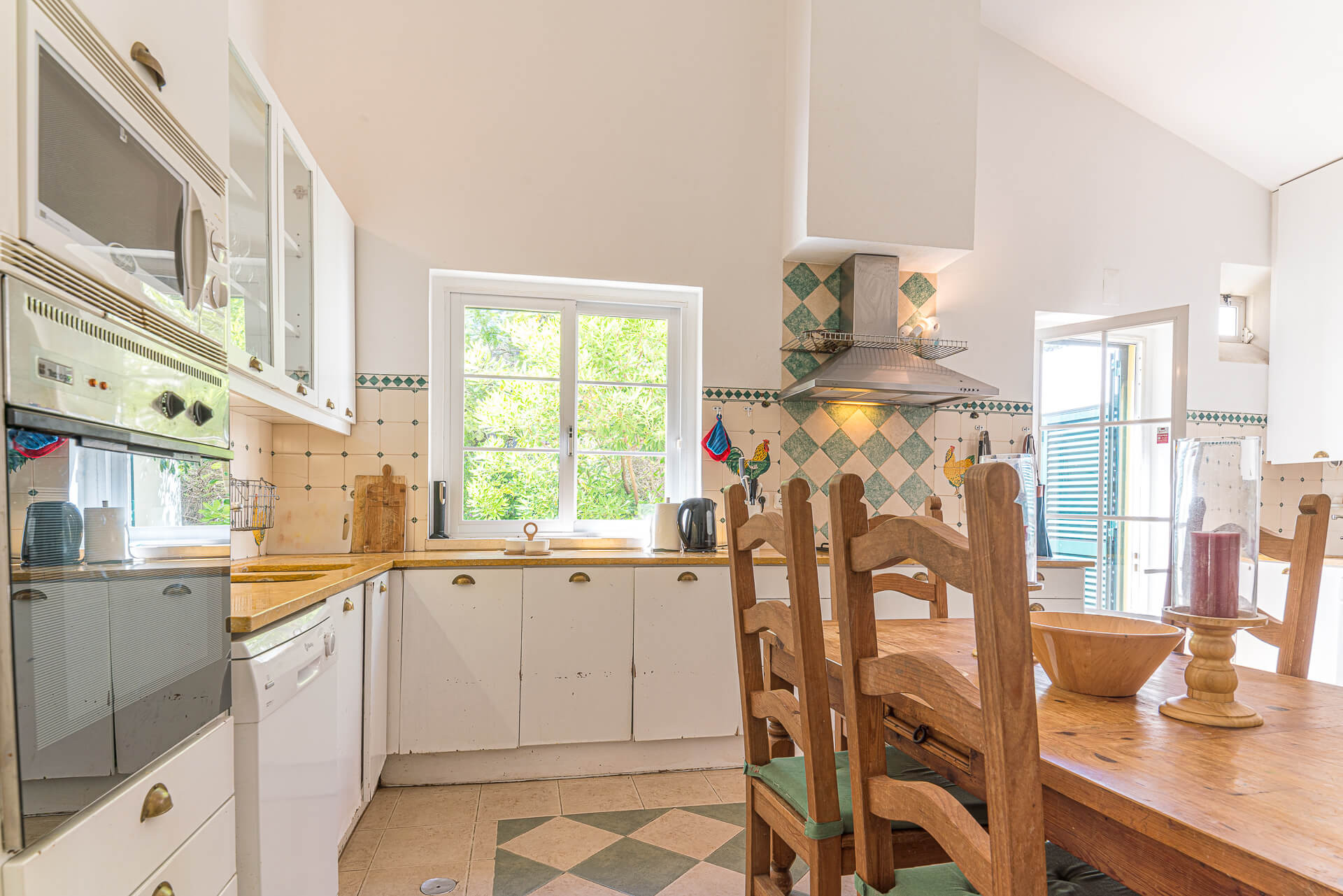 Villa Blanche é uma casa rústica localizada na tranquila e calma Colares perto de Sintra. Acomodando 8 + 2, esta encantadora casa de férias combina em seus 3 andares características modernas, culminando num ambiente agradável. Com 4 quartos, 1 sala de jogos para crianças com 2 colchões no chão, uma cozinha totalmente equipada e área de estar e jantar em plano aberto, esta propriedade aconchegante está preparada para proporcionar umas maravilhosas férias em família. O exterior oferece ainda uma piscina privada aquecida, uma área de refeições ao ar livre com mesa para 12 pessoas, churrasqueira e um amplo jardim com árvores maduras, oferecendo não apenas privacidade, mas também espaço para as crianças brincarem.