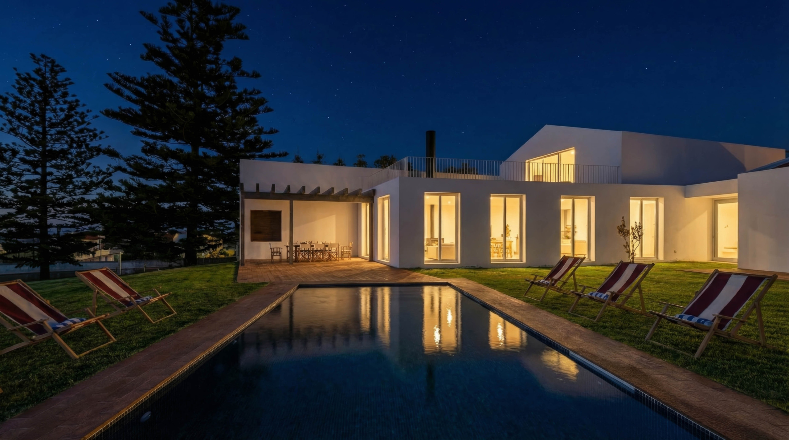 Com vista para o Atlântico, perto de Sintra, a Villa do Mar é um elegante refúgio costeiro concebido para acolher até dez hóspedes. A propriedade combina o charme tradicional português com linhas modernas e simples, oferecendo interiores luminosos e amplas áreas de estar que se abrem harmoniosamente para o exterior. Uma piscina privada e generosos terraços criam o cenário perfeito para dias relaxantes ao sol e finais de tarde com vista panorâmica sobre o oceano.