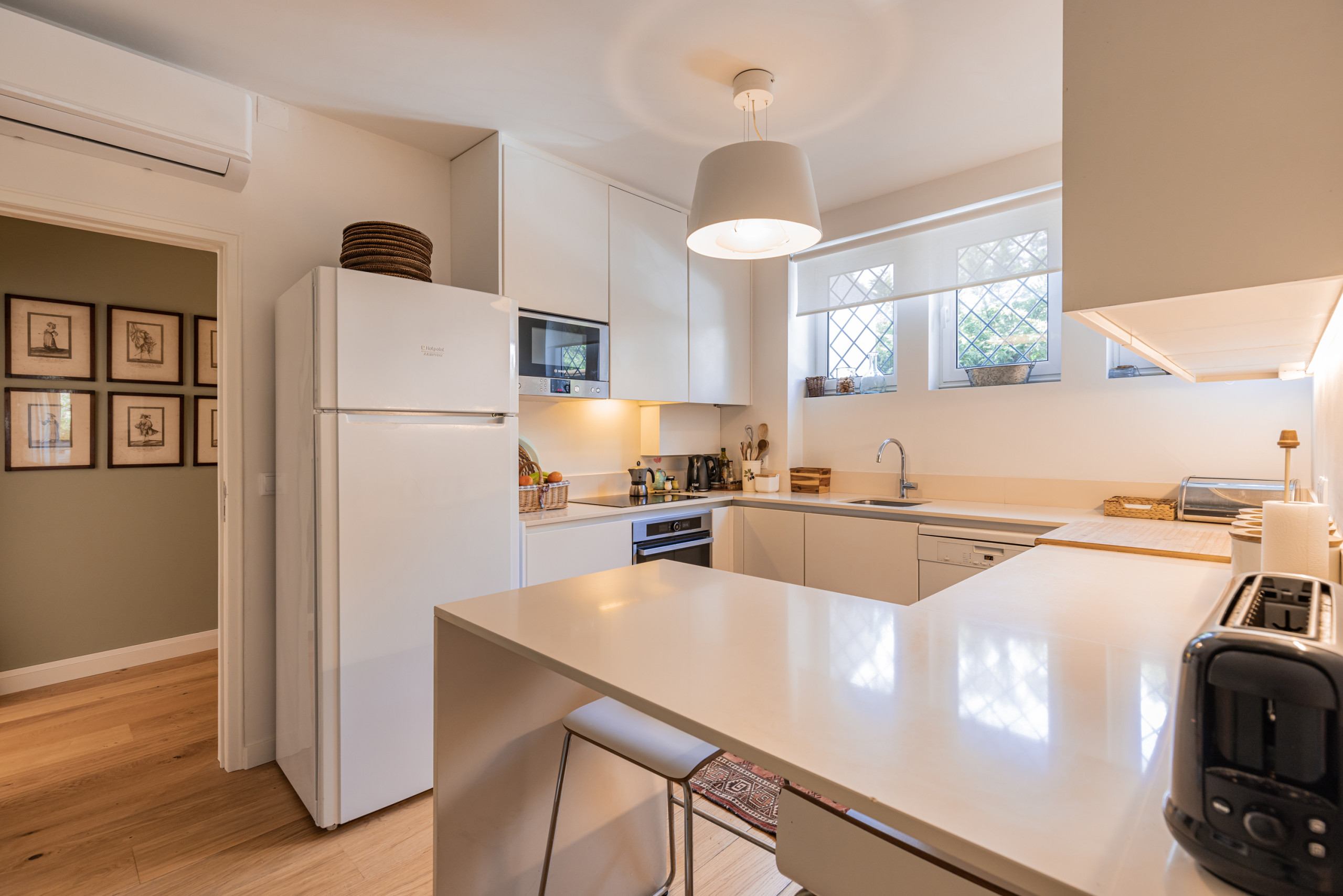 Cozinha equipada, lavandaria e despensa, AC