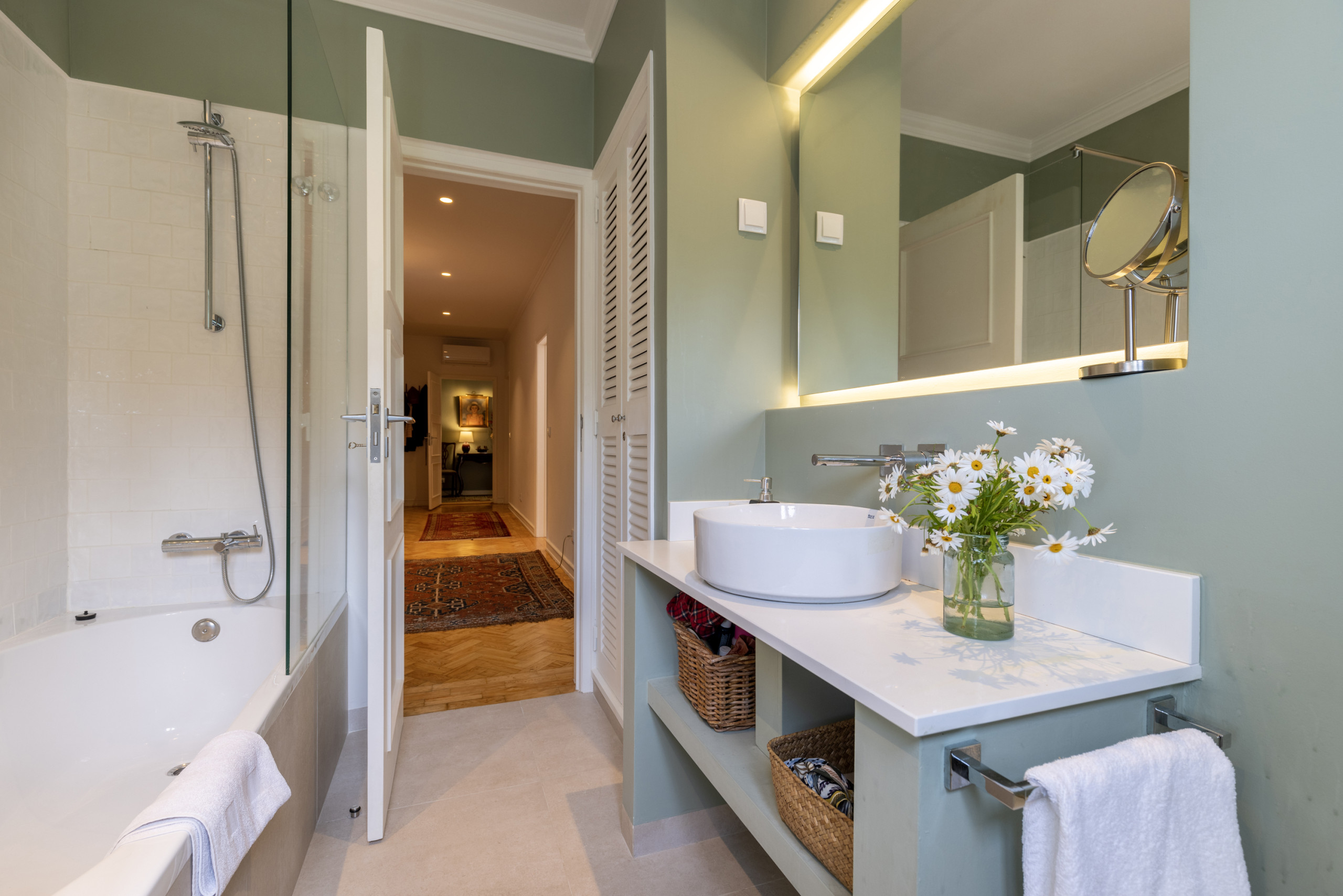 1 casa de banho com chuveiro e banheira