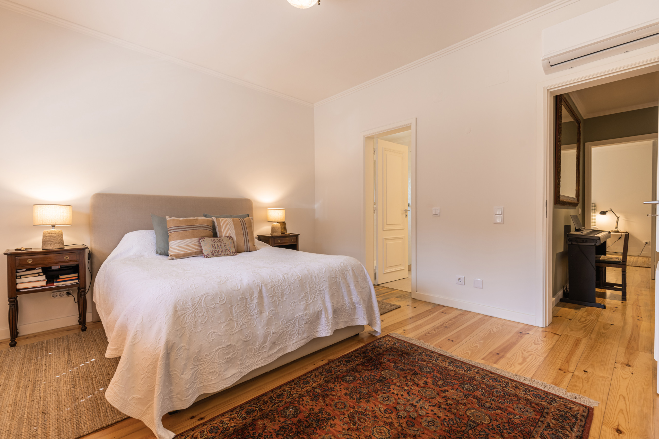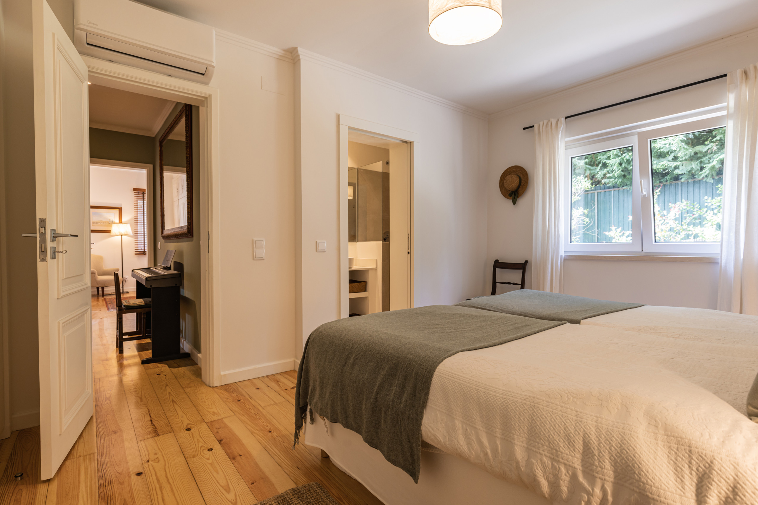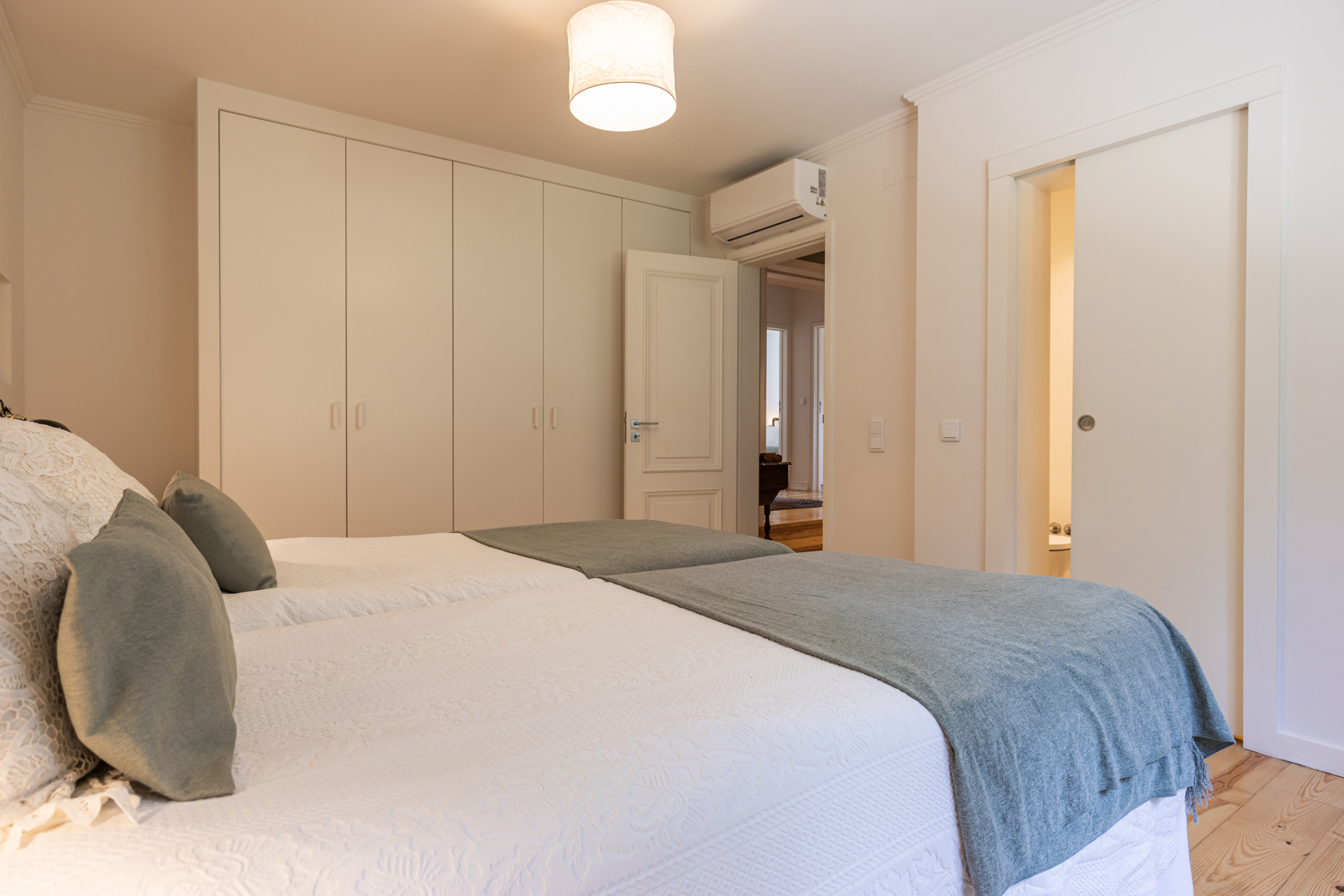 O corredor que dá acesso aos 3 quartos sem ar condicionado dispõe de uma unidade de ar condicionado que serve a todos eles em simultâneo.