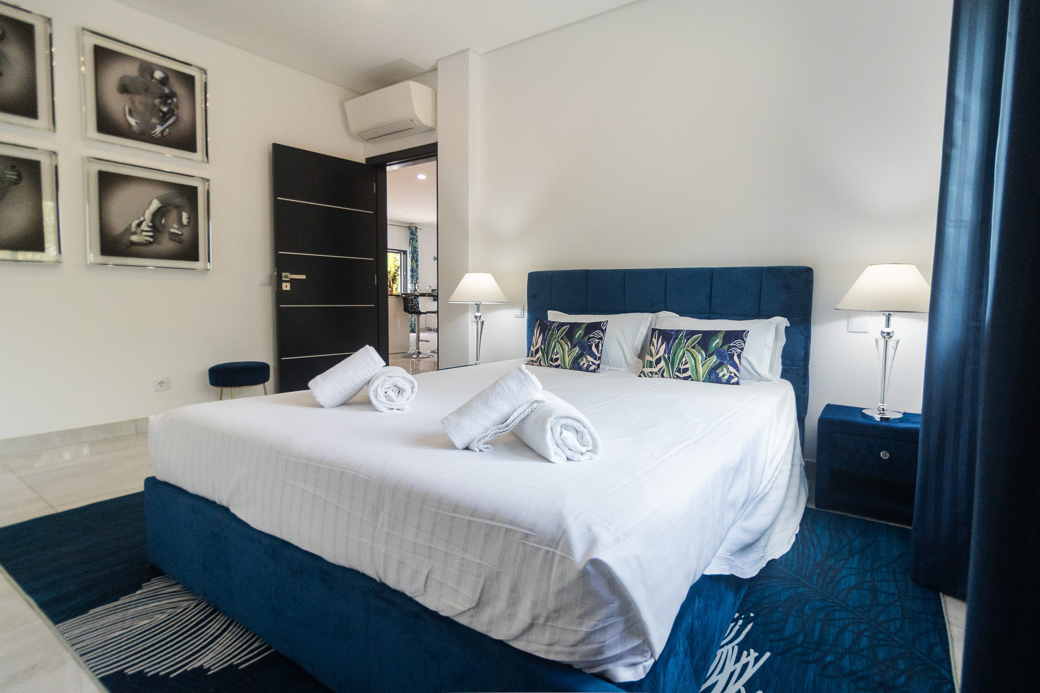 1 suite com cama de casal 1.60 m x 2.00 m, casa de banho com banheira, AC