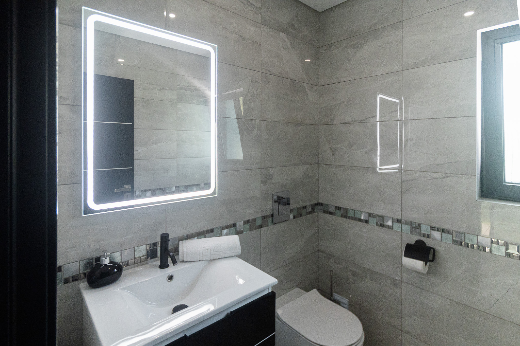3 casas de banho e 1 sanitário/meia casa de banho