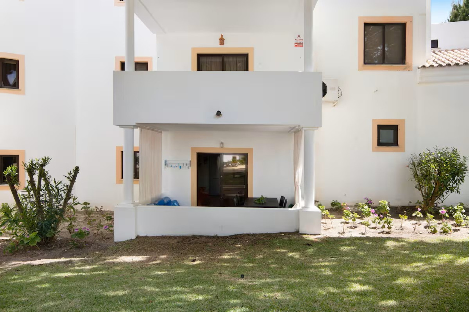 After a day at the beach, guests can unwind by the shared swimming pool, let children enjoy the kids’ pool, relax in the garden, or retreat to the private covered terrace and balcony—ideal for soaking up the Algarve sunshine.