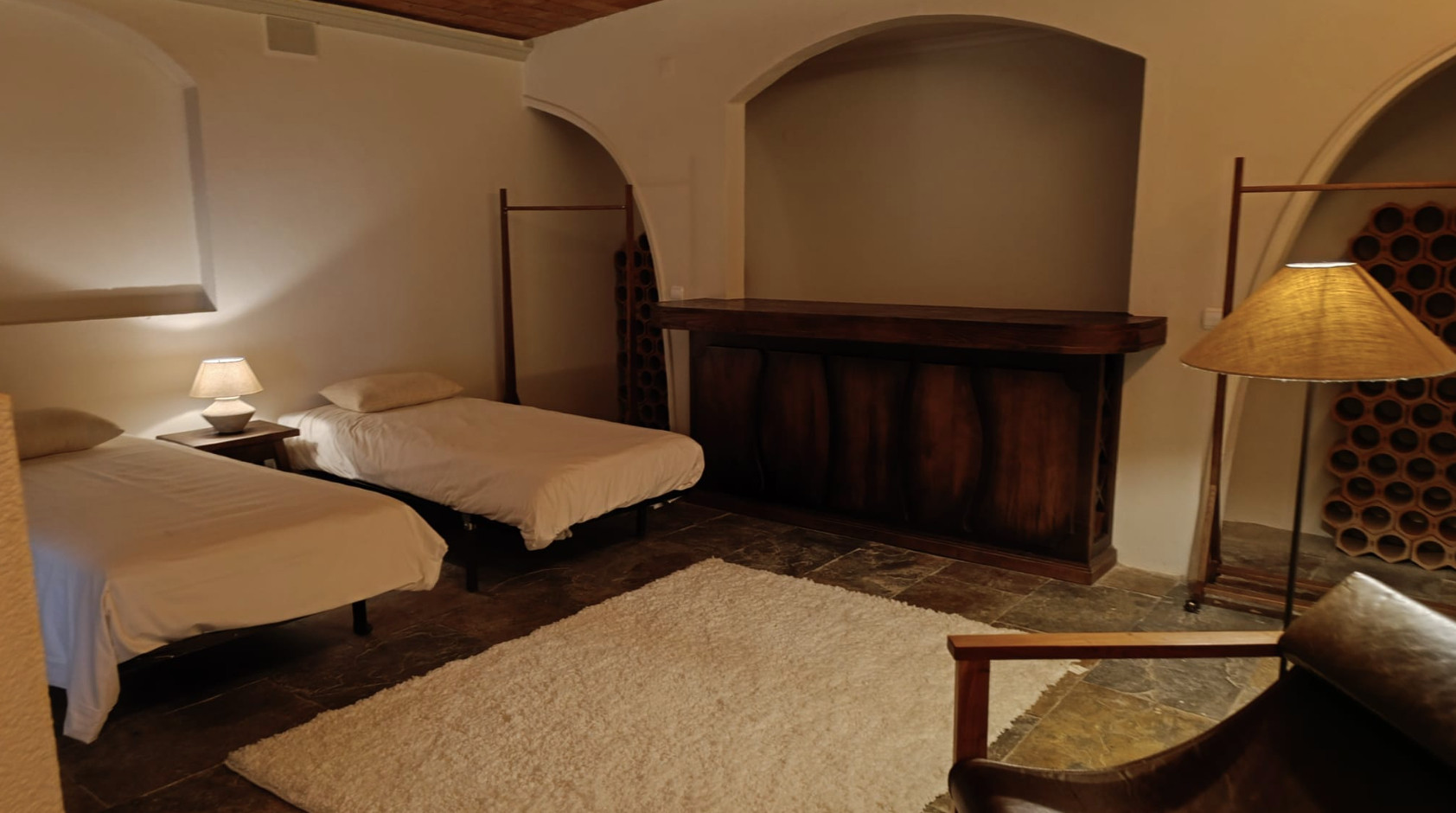 1 suite with double bed 1.80 m x 2.00 m, bathroom with double shower, AC