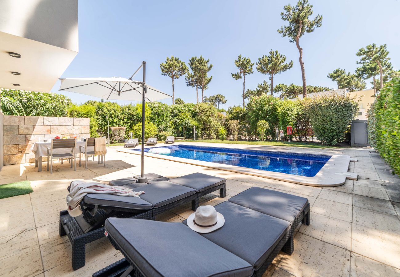 Villa dos Narcisos is a modern villa in Aroeira Golf Resort. The 2-storey villa is stylishly furnished throughout and offers accommodation for 8 persons. The property offers 5 bedrooms, a games room, a private swimming pool 9 m x 4.5 m, a garden, 5 bicycles, a barbecue, an exterior lounge area and an outdoor dining table, ideal for a wonderful alfresco meal. The villa is 5 km away from the beach and 25 km from Lisbon. Guests can find 2 golf courses, 4 tennis courts, a shopping area, bars and restaurants, all inside the resort. The Villa itself is integrated into a privileged area of pine forest, the perfect place to enjoy nature and long walks in unspoiled surroundings, all close to spectacular beaches.