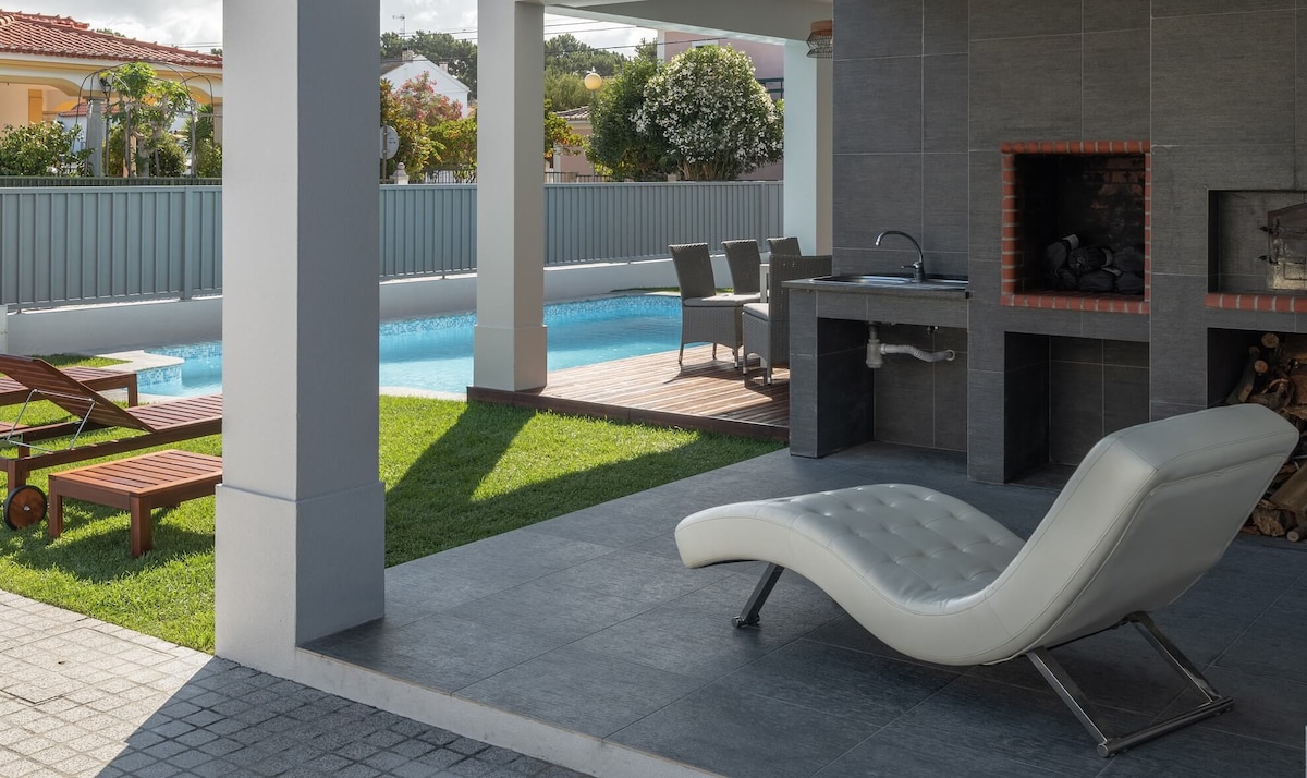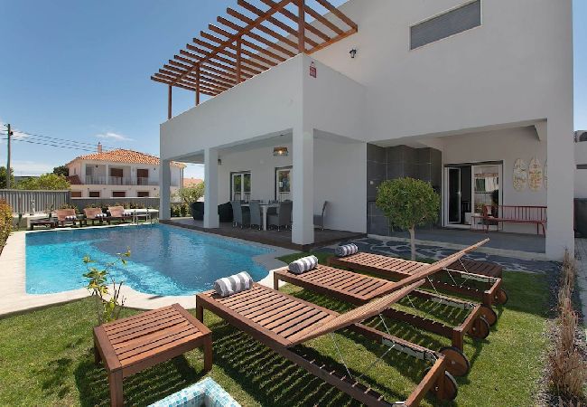 Happy Villa is a contemporary villa located in Lagoa de Albufeira, the beachside of the Lisbon Coast. With the capacity to welcome 14 guests, this property showcases sophistication all over. The interior comes with a fully equipped kitchen with modern appliances, a living and dining area in open space, 3 spacious bedrooms and an attic with 6 single beds. Air conditioning and electric shutters are other features that come with the property. The exterior of this wonderful holiday home highlights a private swimming pool 8 m x 4.5 m, outdoor dining and lounge areas, a built-in barbecue, and private parking for 2 cars.