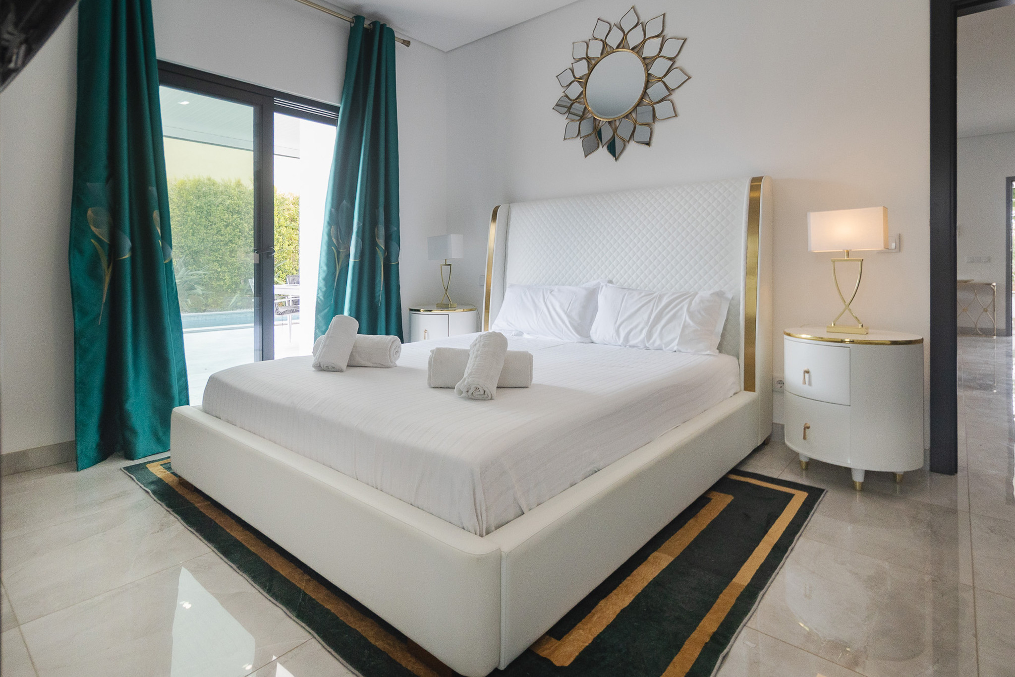 The villa blends traditional furnishings with modern styles, creating a warm and welcoming feel that is perfect for a relaxing stay.