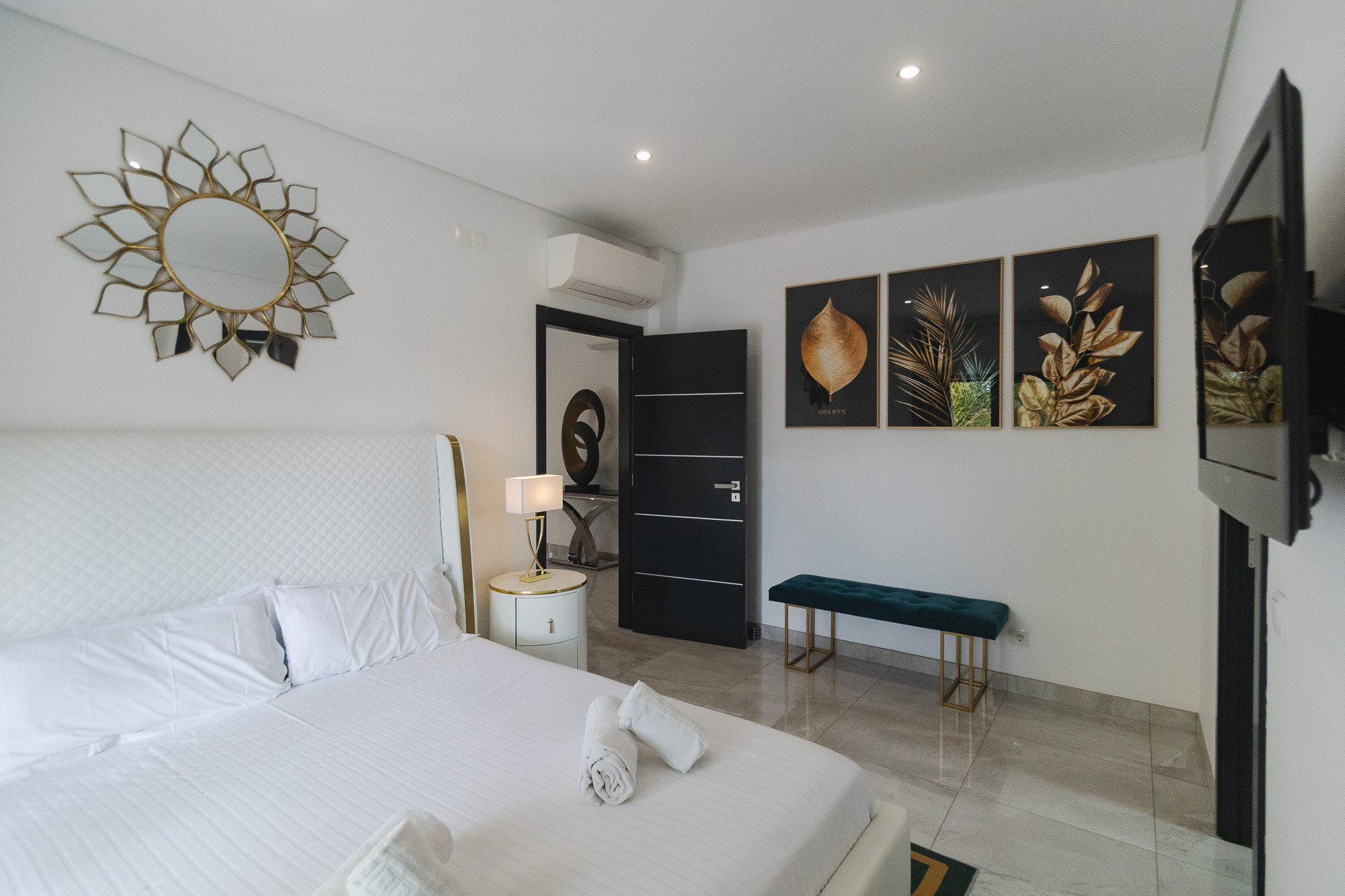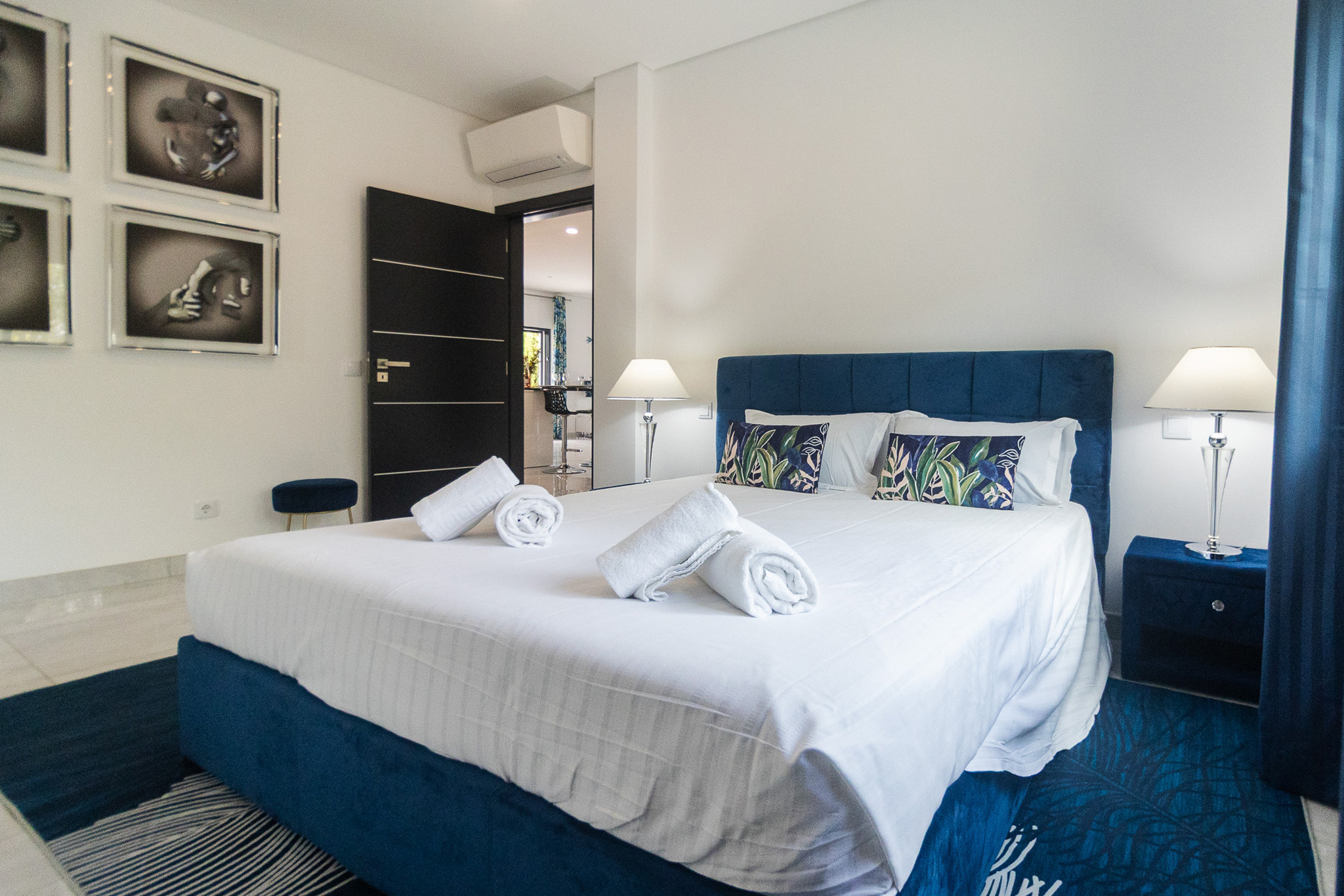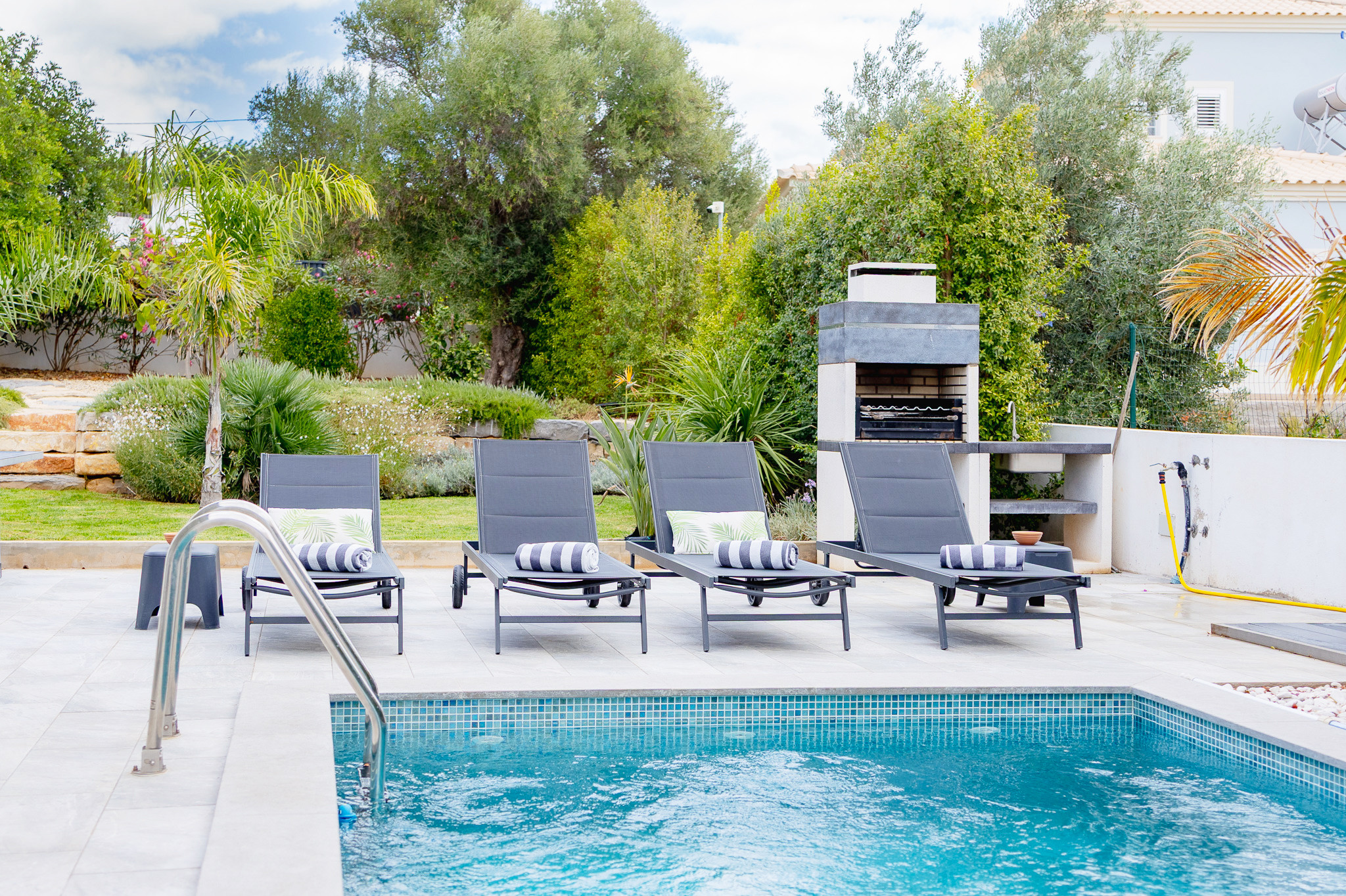 Outside, the private swimming pool is perfect for cooling off under the Algarve sun, while the barbecue area sets the stage for delightful outdoor dining. On the rooftop, a large terrace offers a welcoming space to enjoy the sunset or simply relax with a drink in hand.
